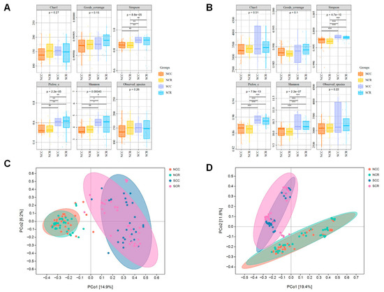 - Caporaso, J.G.; Lauber, C.L.; Walters, W.A.; Berg-Lyons, D.; Lozupone, C.A.; Turnbaugh, P.J.; Fierer, N.; Knight, R. Global patterns of 16S rRNA diversity at a depth of millions of sequences per sample. Proc. Natl. Acad. Sci. USA 2011, 108, 4516–4522. [Google Scholar] [CrossRef] [PubMed]
