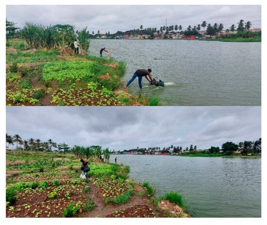 - Tano, B.; Abo, K.; Dembele, A.; Fondio, L. Systèmes de Production et Pratiques à Risque En Agriculture Urbaine: Cas Du Maraîchage Dans La Ville de Yamoussoukro En Côte d’Ivoire. Int. J. Biol. Chem. Sci. 2012, 5, 2317–2329. [Google Scholar] [CrossRef]