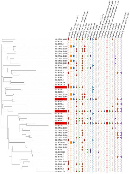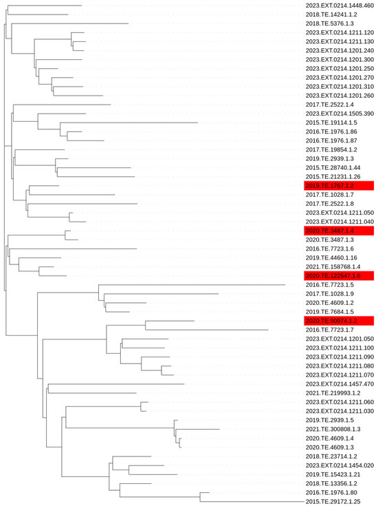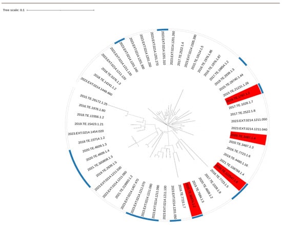 - Letunic, I.; Bork, P. Interactive Tree Of Life (iTOL) v5: An Online Tool for Phylogenetic Tree Display and Annotation. Nucleic Acids Res. 2021, 49, W293–W296. [Google Scholar] [CrossRef]