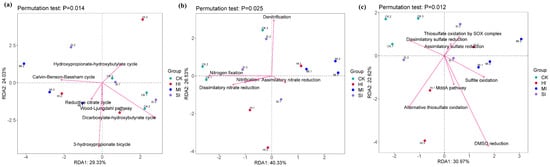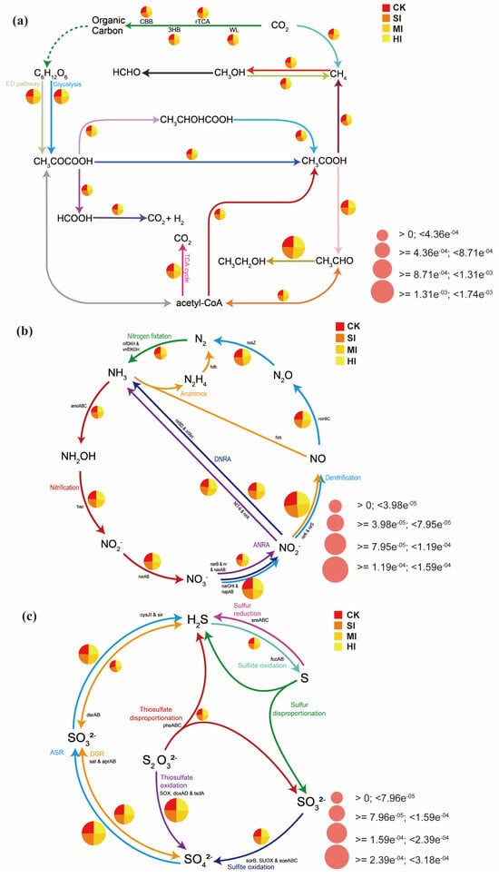 3.2. Changes in Microbial Diversity Related to Carbon, Nitrogen, and Sulfur Cycles