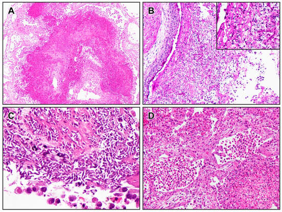 - Horgan, M.D.; Alexander, A.B.; Innis, C.; Stacy, B.A.; Gai, J.J.; Pesavento, P.A.; Highland, M.A.; Liguori, B.L.; Norton, T.M.; Wellehan, J.F.X.; et al. PULMONARY AND COELOMIC MYCOSES DUE TO METARHIZIUM AND BEAUVERIA SPECIES IN REPTILES. J. Zoo Wildl. Med. 2022, 53, 605–612. [Google Scholar] [CrossRef]