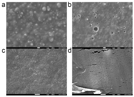 To visualize the differential degradation of the two mulch films in soil, we observed their surface morphology using scanning electron microscopy (SEM) (Figure 1). The SEM images clearly revealed disparate degradation rates between the CF and BF treatments. Before soil application, the surfaces of both new CF (Figure 1a) and new BF (Figure 1c) films were relatively smooth and intact, with no obvious pores or cracks. After 1.5 years of incubation in the soil, the surface of the CF exhibited numerous pores and cracks. However, its macroscopic structure remained largely intact (Figure 1b) indicating strong durability and high physical inertia. This suggests that CF primarily acts as a slow-releasing source of microplastics and a persistent physical barrier. In contrast, the BF film showed extensive cracking and fragmentation after only 20 days in the soil (Figure 1d). Its original surface structure had almost completely disintegrated. This indicates that the degradation of the BF is accompanied by the rapid release of its components (e.g., polylactic acid, plasticizers) and microplastics, introducing a substantial amount of readily degradable organic matter and small particles into the soil environment in a short period.