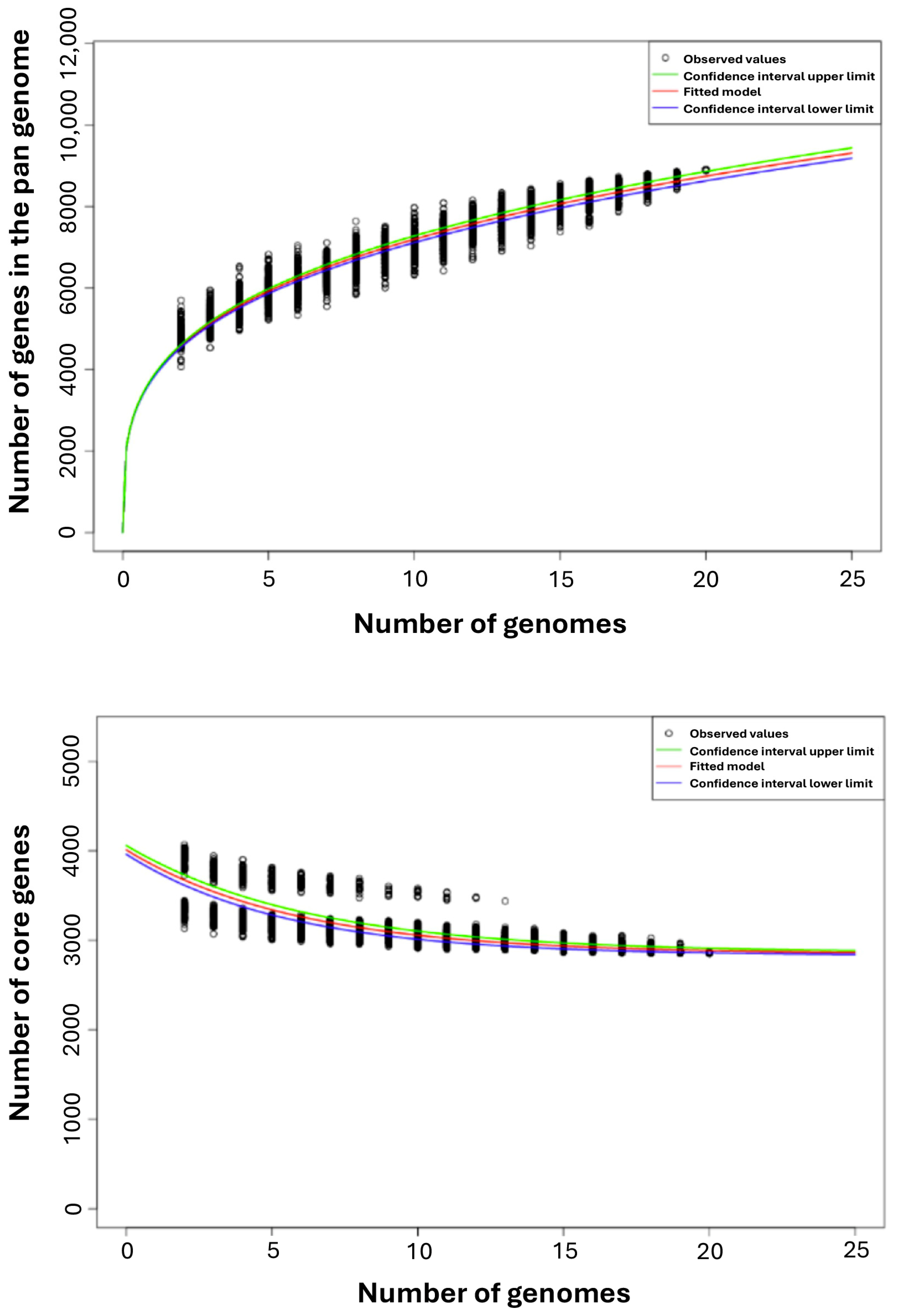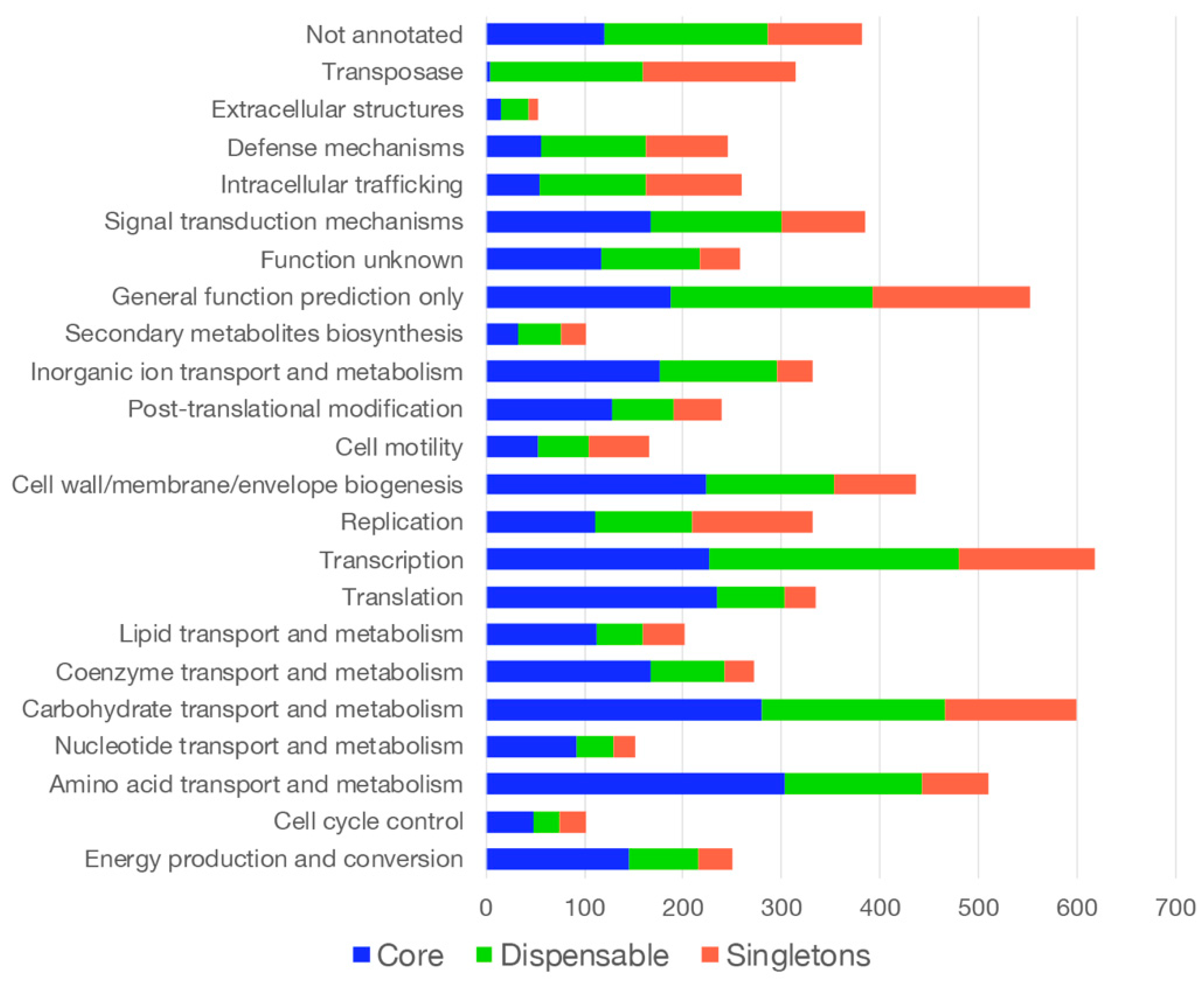 3.2. Functional Annotation of the Pan- and Core Genome Sequences