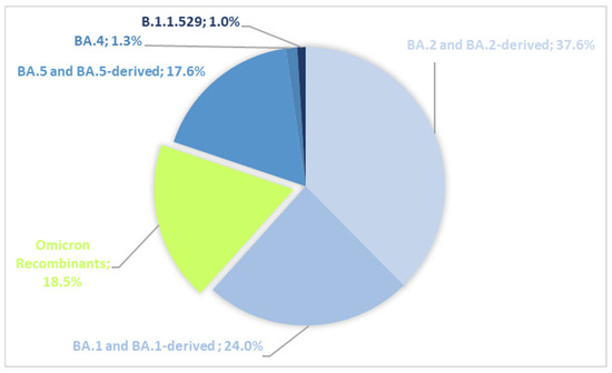 Despite the global interest in Omicron’s evolution, data in Tunisia and North Africa remain limited. Chouikha et al. and Haddad-Boubaker et al. offered a genetic analysis of SARS-CoV-2 evolution in Tunisia over the first 17 months of the pandemic and the Delta wave in Tunisia, respectively [13,14]. In a subsequent study of the Tunisian pediatric population, Khemiri et al. reported Delta as the predominant variant (39.8%) between April 2020 and February 2022, followed by Omicron (24.2%) and Alpha (13.9%) [15].
