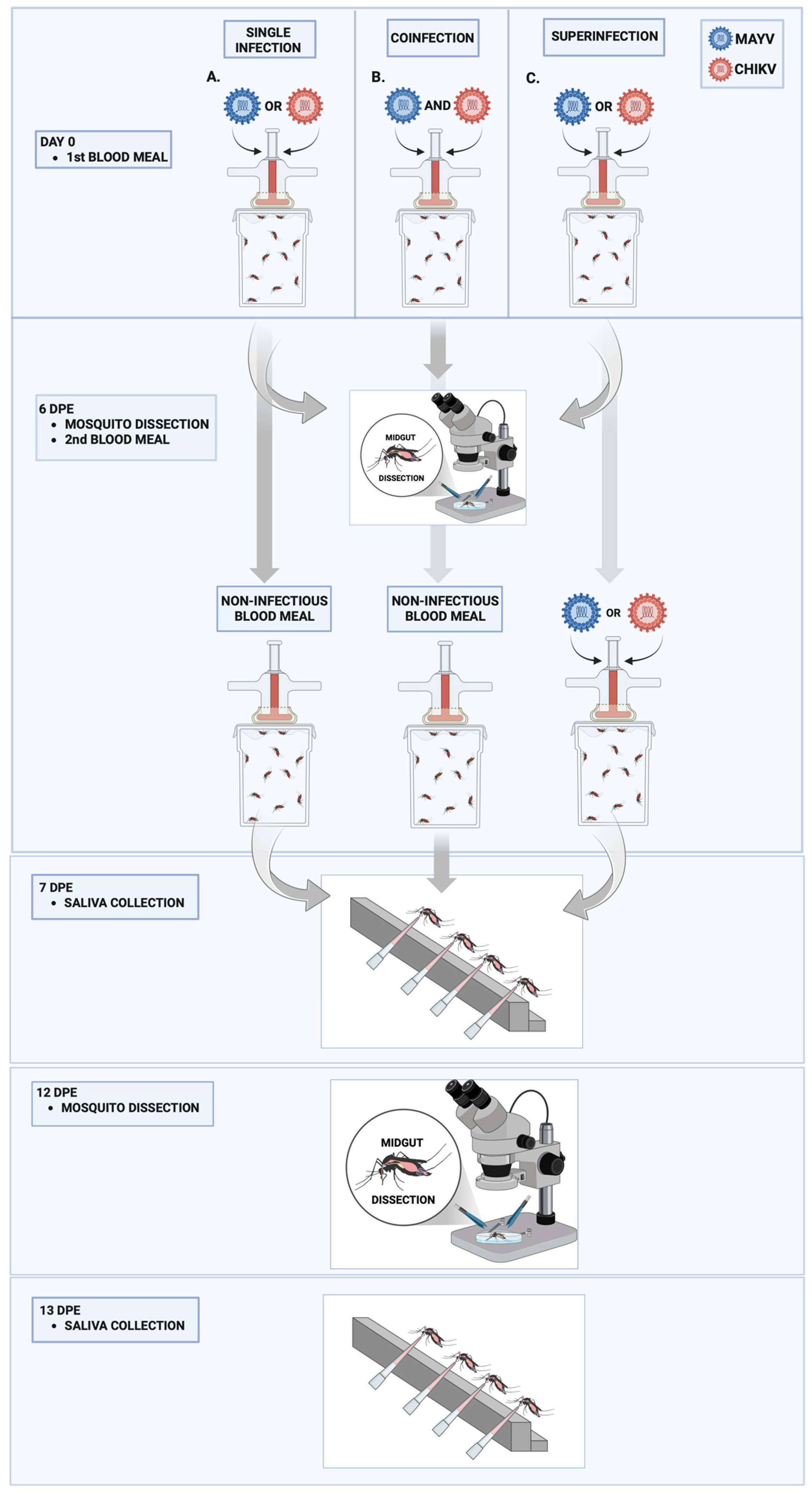 Oliveira MEdSPd, Krokovsky L, Couto MJB, Guedes DRD, Diniz GTN, Ayres CFJ, Paiva MHS. Evaluation of the Impact of Coinfection and Superinfection on Chikungunya and Mayaro Viruses’ Replication in Aedes aegypti. Microorganisms. 2025; 13(9):2165. https://doi.org/10.3390/microorganisms13092165