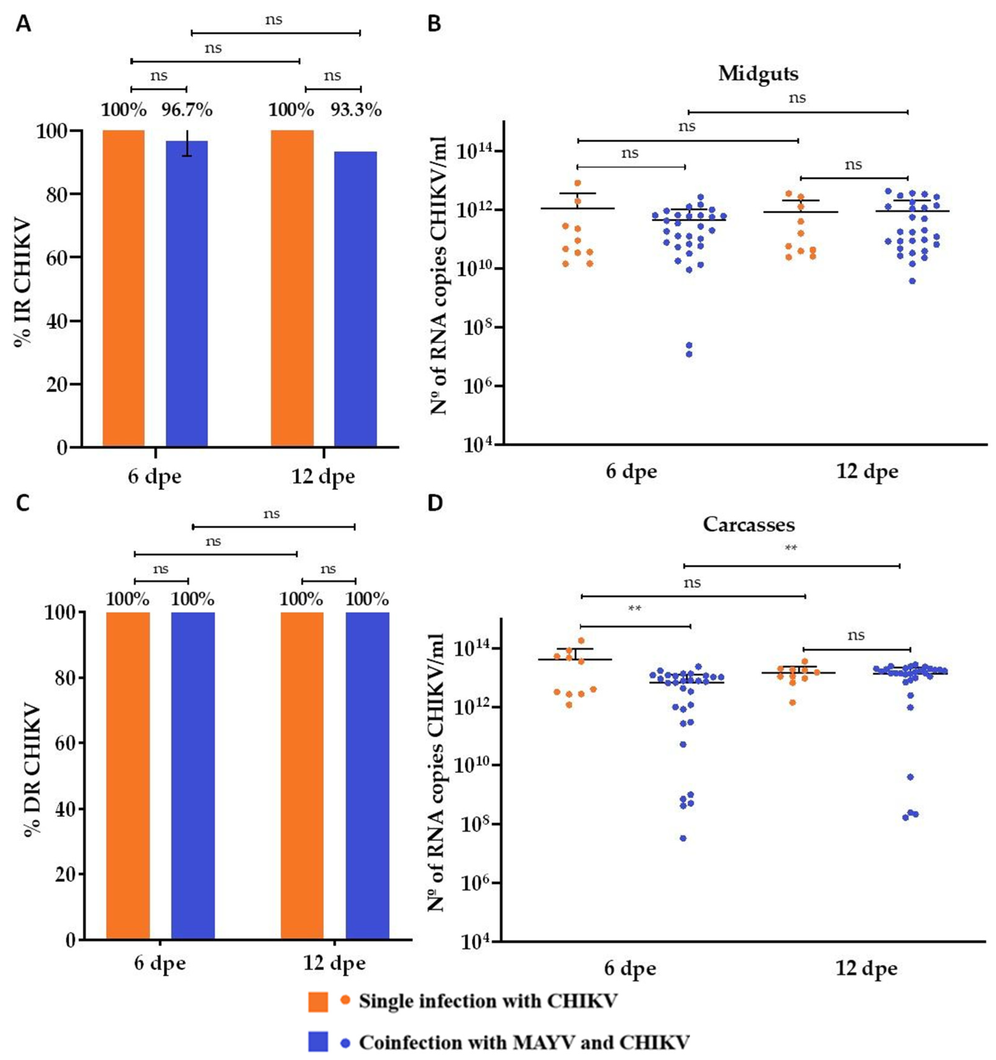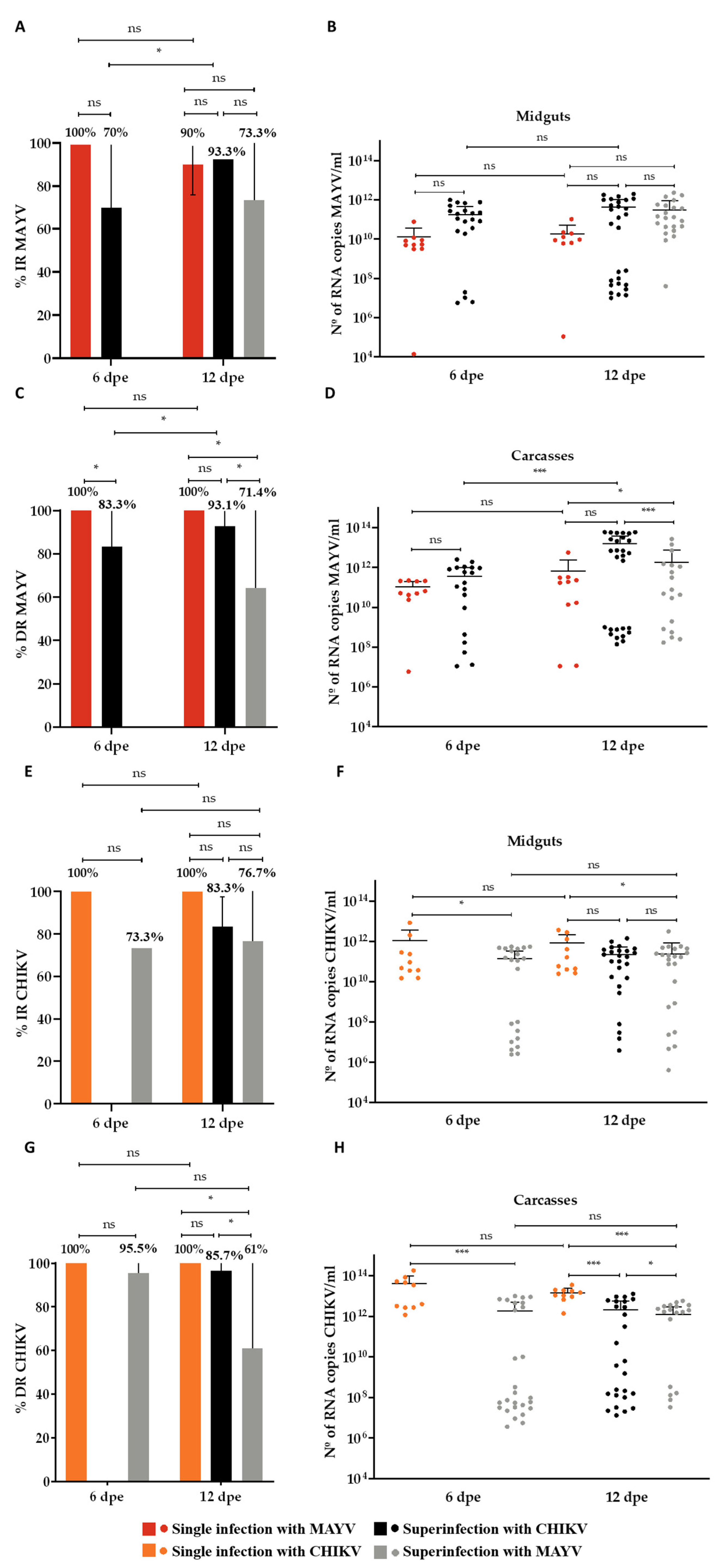 Chicago/Turabian StyleOliveira, Maria Eduarda dos Santos Pereira de, Larissa Krokovsky, Maria Júlia Brito Couto, Duschinka Ribeiro Duarte Guedes, George Tadeu Nunes Diniz, Constância Flávia Junqueira Ayres, and Marcelo Henrique Santos Paiva. 2025. "Evaluation of the Impact of Coinfection and Superinfection on Chikungunya and Mayaro Viruses’ Replication in Aedes aegypti" Microorganisms 13, no. 9: 2165. https://doi.org/10.3390/microorganisms13092165