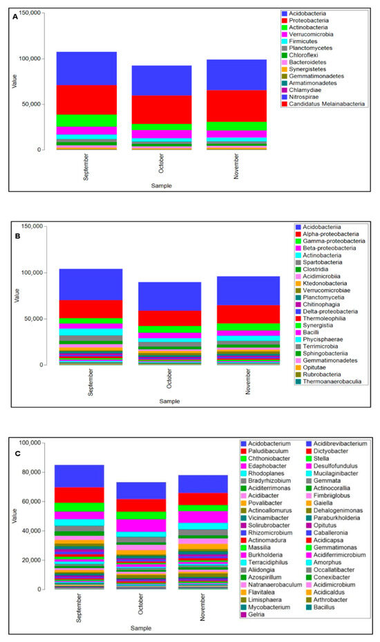 - Kim, H.S.; Lee, S.H.; Jo, H.Y.; Finneran, K.T.; Kwon, M.J. Diversity and composition of soil Acidobacteria and Proteobacteria communities as a bacterial indicator of past land-use change from forest to farmland. Sci. Total Environ. 2021, 797, 148944. [Google Scholar] [CrossRef] [PubMed]