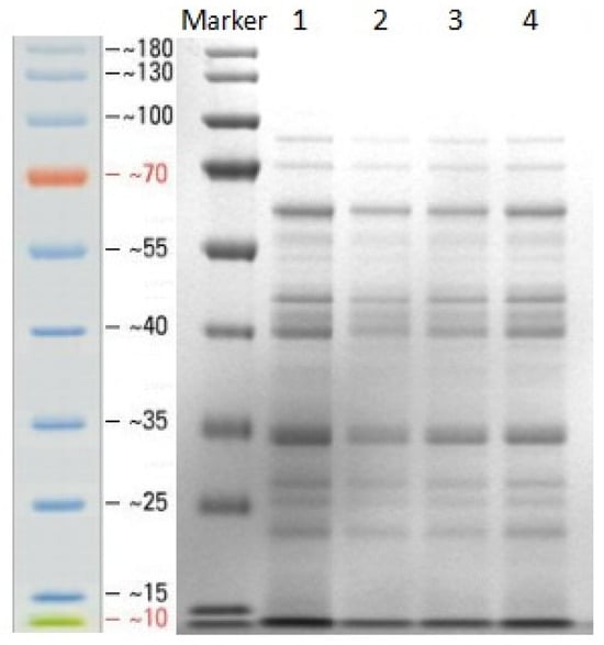 - Menezes, L.A.A.; Pimentel, M.; Alves, T.D.O.; Nascimento, T.P.D.; Evaristo, J.A.M.; Nogueira, F.C.S.; Ferreira, M.S.L.; Lindner, J.D.D. Label-free quantitative proteomics to exploit the impact of sourdough fermentation on reducing wheat allergenic fractions. Food Chem. 2024, 430, 137037. [Google Scholar] [CrossRef]