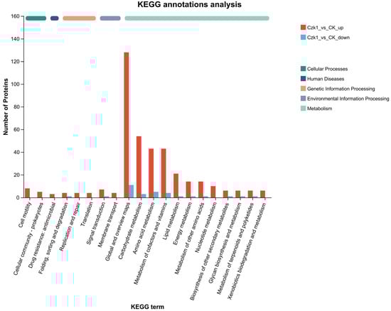 3.8. KEGG Metabolic Pathway of Differentially Expressed Proteins