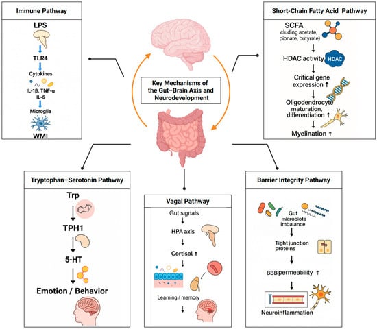 3. Key Mechanistic Pathways of the Gut–Brain Axis in Neurodevelopment