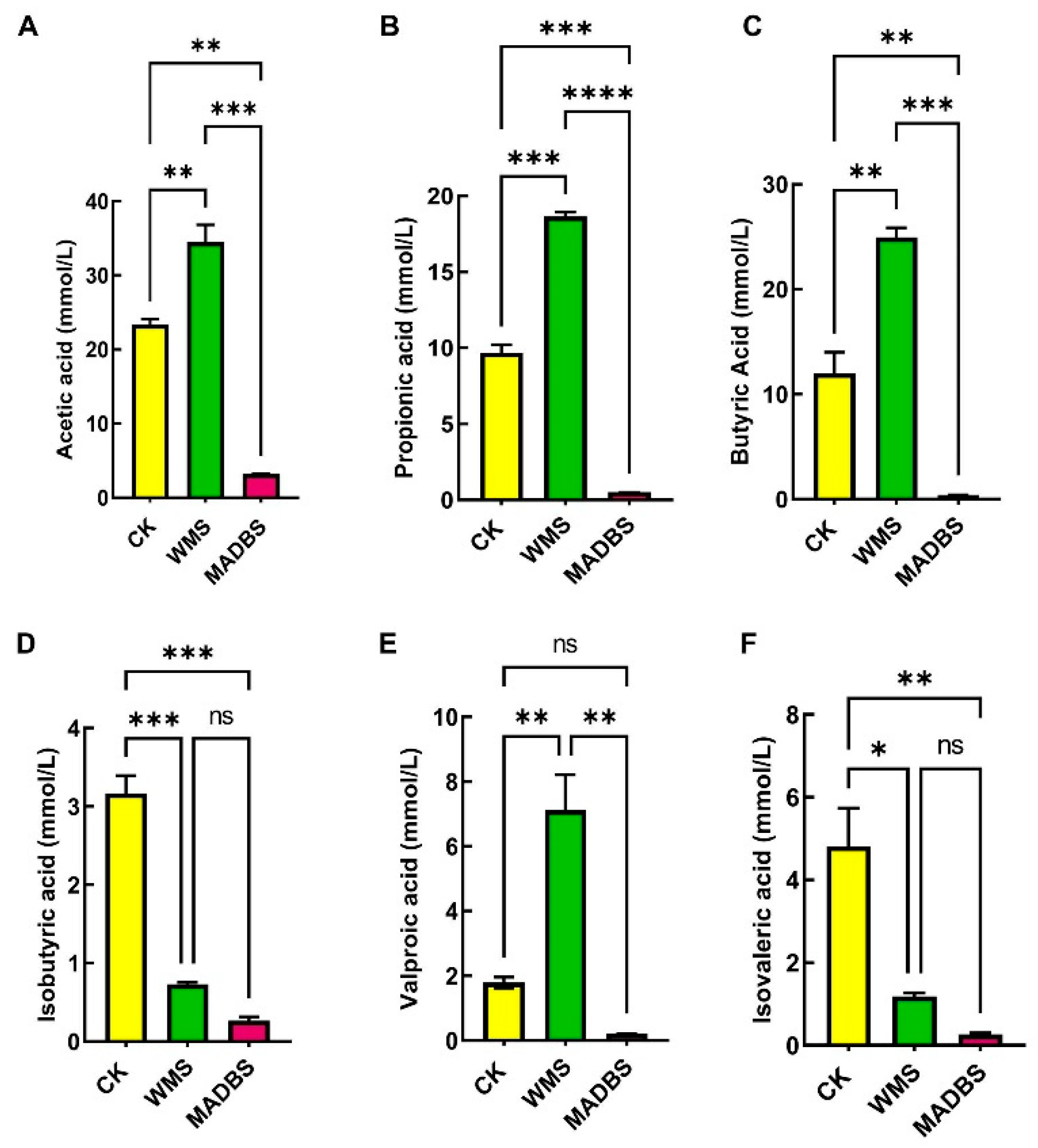 3.1. Effects of WMS and MADBS on SCFA Production