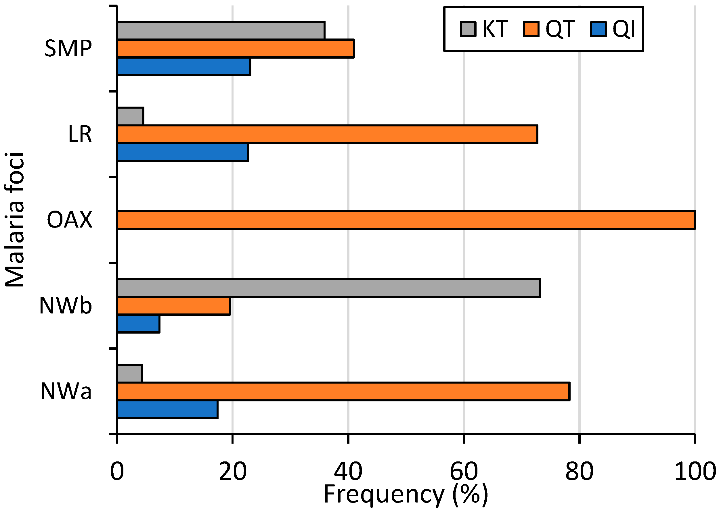 Malaria Foci: | Total (n) | Genotype by PCR-RFLP (n) | |||||||||