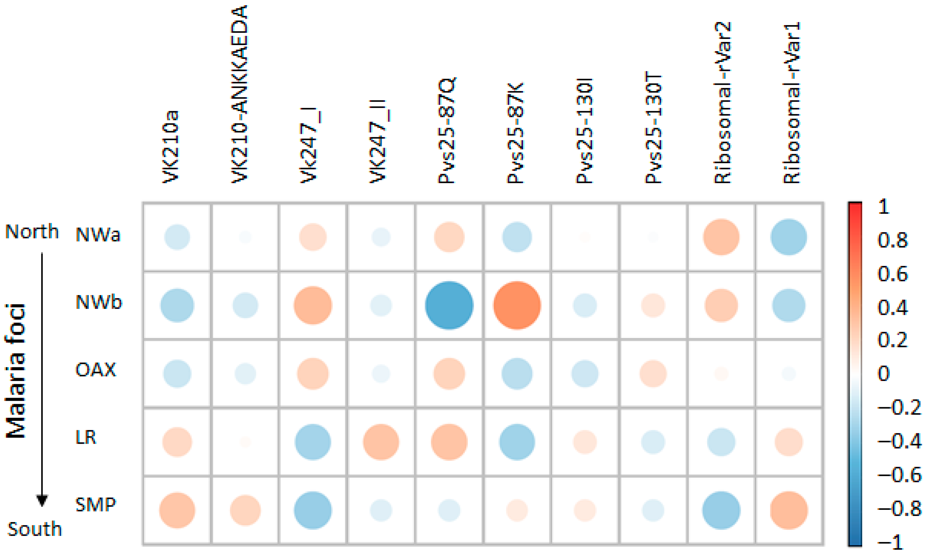 - Gonzalez-Ceron, L.; Rodriguez, M.H.; Nettel-Cruz, J.A.; Hernandez-Avila, J.E.; Malo-Garcia, I.R.; Santillan-Valenzuela, F.; Villarreal-Trevino, C. Plasmodium vivax CSP-Pvs25 Variants from Southern Mexico Produce Distinct Patterns of Infectivity for Anopheles albimanus versus An. pseudopunctipennis, in Each Case Independent of Geographical Origin. Parasites Vectors 2019, 12, 86. [Google Scholar] [CrossRef]