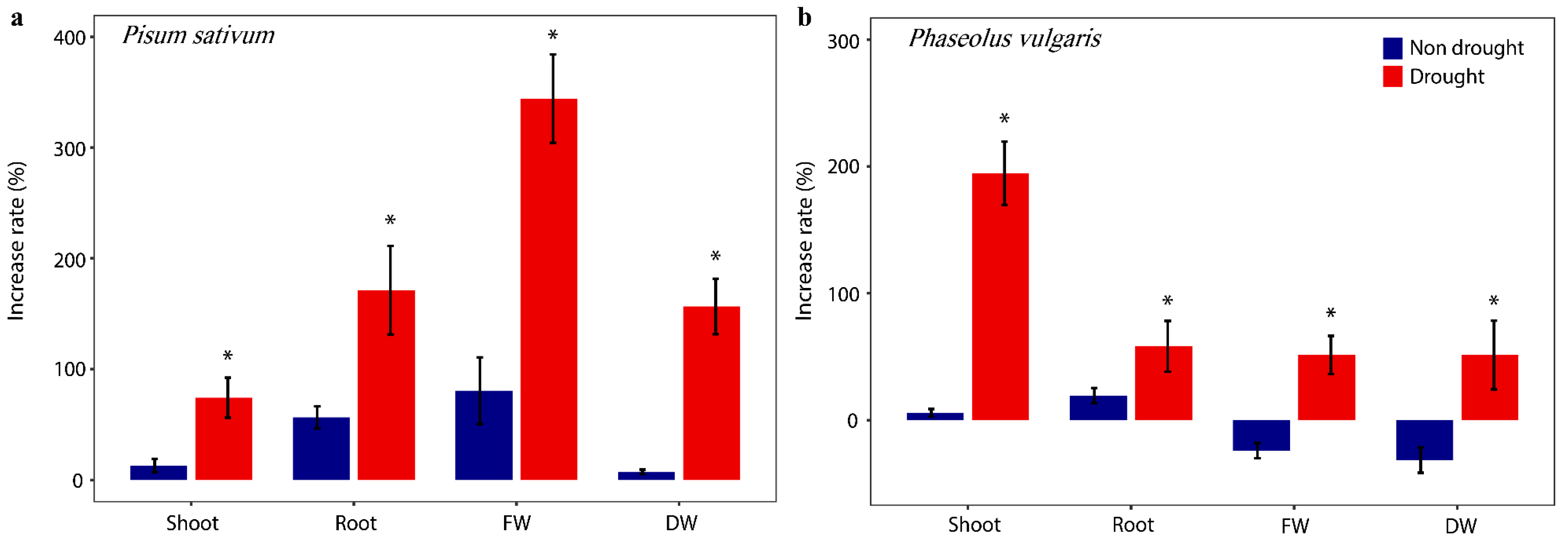 - Ferrante, R.; Campagni, C.; Vettori, C.; Checcucci, A.; Garosi, C.; Paffetti, D. Meta-analysis of plant growth-promoting rhizobacteria interaction with host plants: Implications for drought stress response gene expression. Front. Plant Sci. 2024, 14, 1282553. [Google Scholar] [CrossRef] [PubMed]