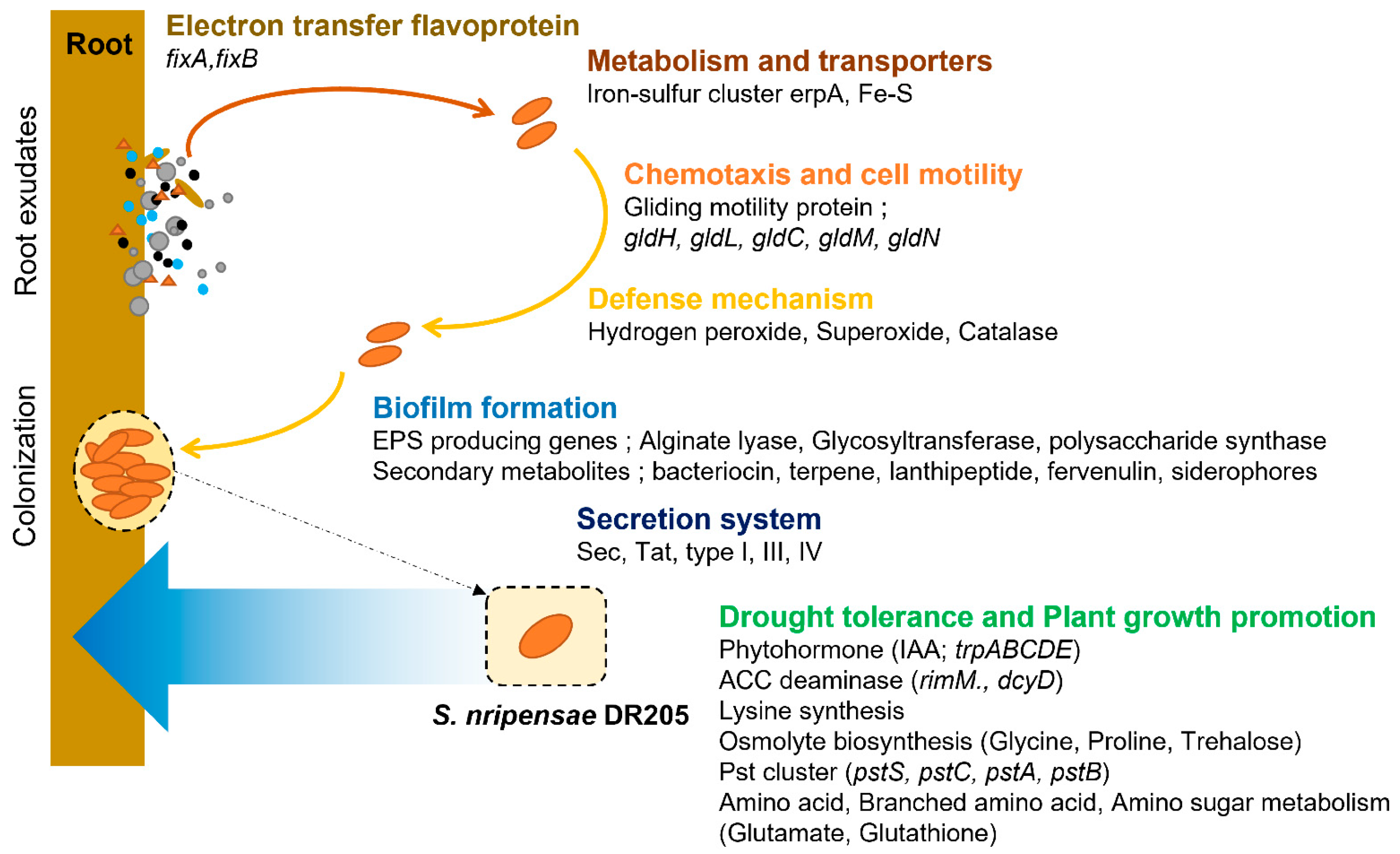 - Nishu, S.D.; No, J.H.; Lee, T.K. Transcriptional response and plant growth promoting activity of Pseudomonas fluorescens DR397 under drought stress conditions. Microbiol. Spectr. 2022, 10, e00979-22. [Google Scholar] [CrossRef] [PubMed]