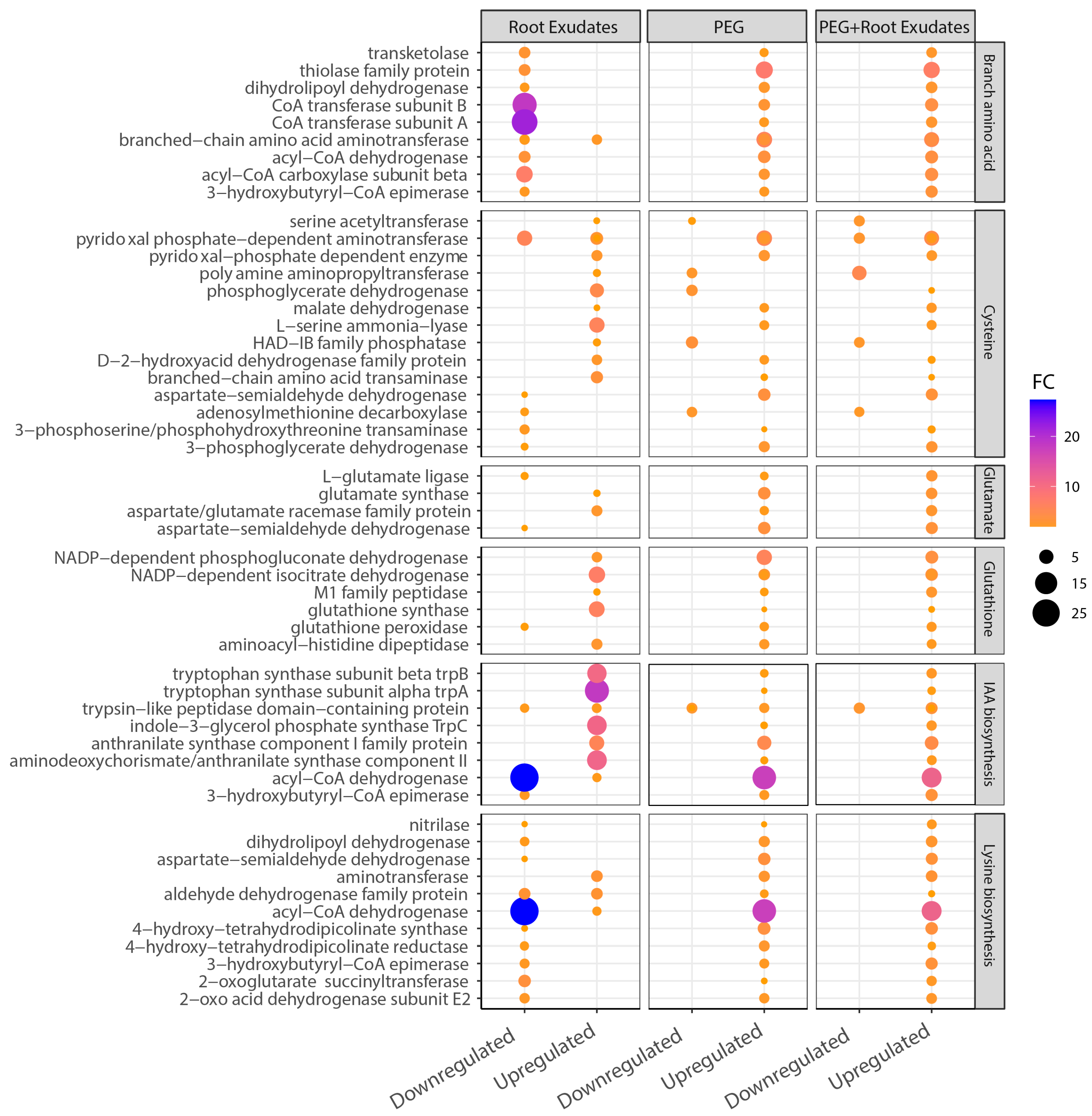 3.5. BCAA and Lysine Biosynthesis Pathways Emerge as Key Mediators of Drought-Specific Symbiosis