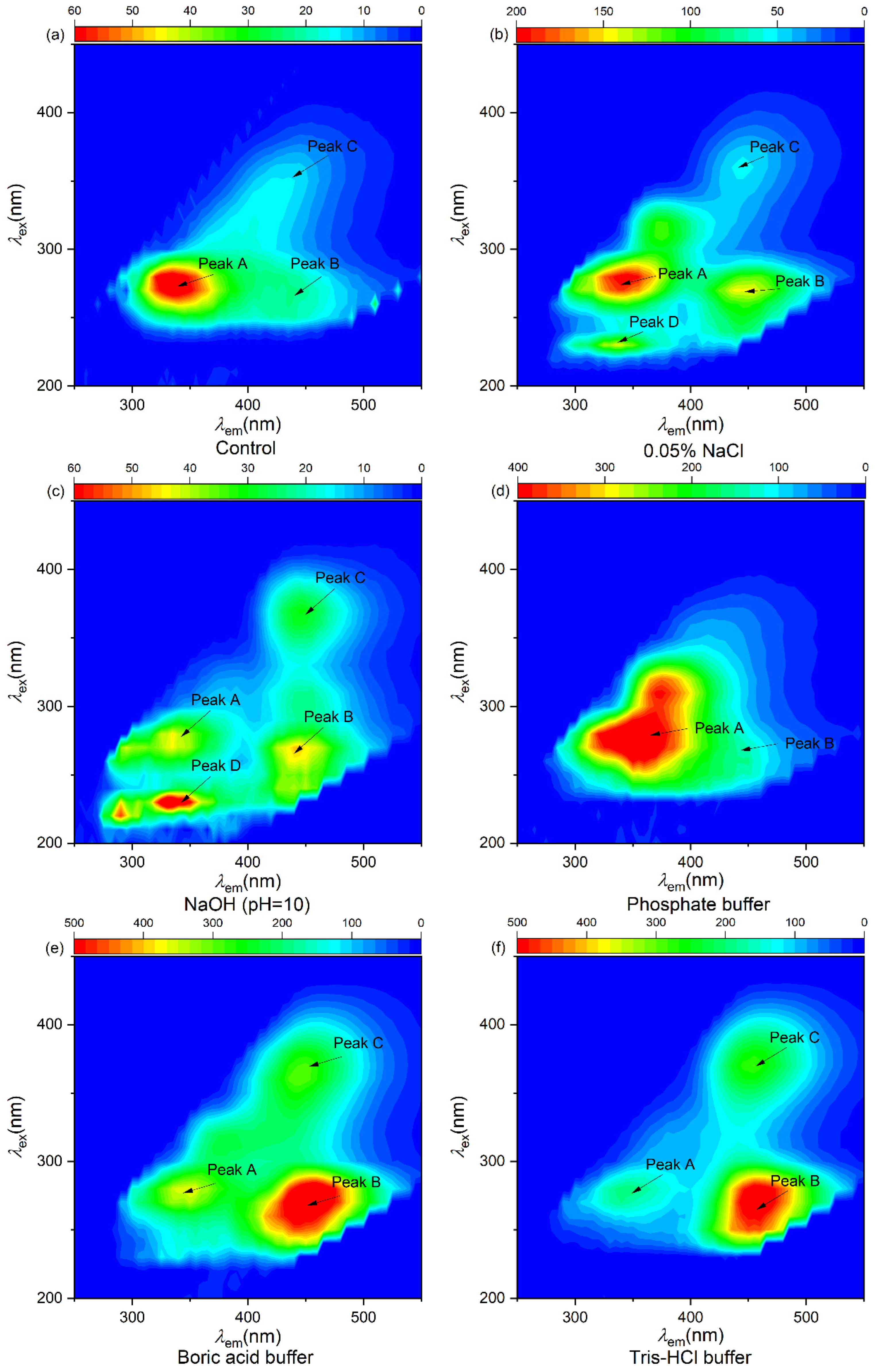 | Tris-HCl buffer | 280/335 | 197.12 | 250/450 | 505.66 | 355/455 | 283.26 | / | / |