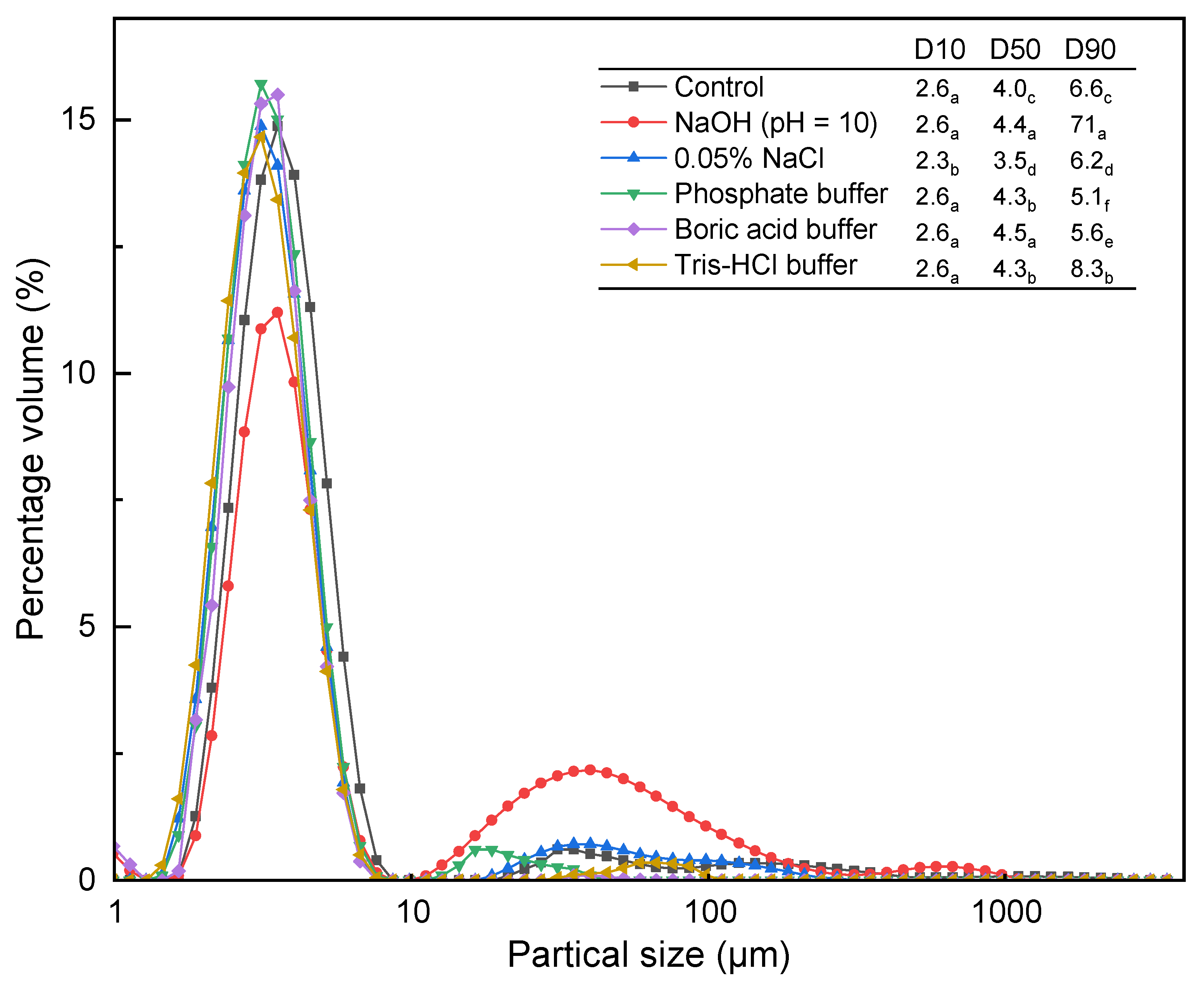 | Tris-HCl buffer | 60 °C, 30 min | 0.12 ± 0.02 a | 0.94 ± 0.04 b | 9.7 ± 0.81 c |