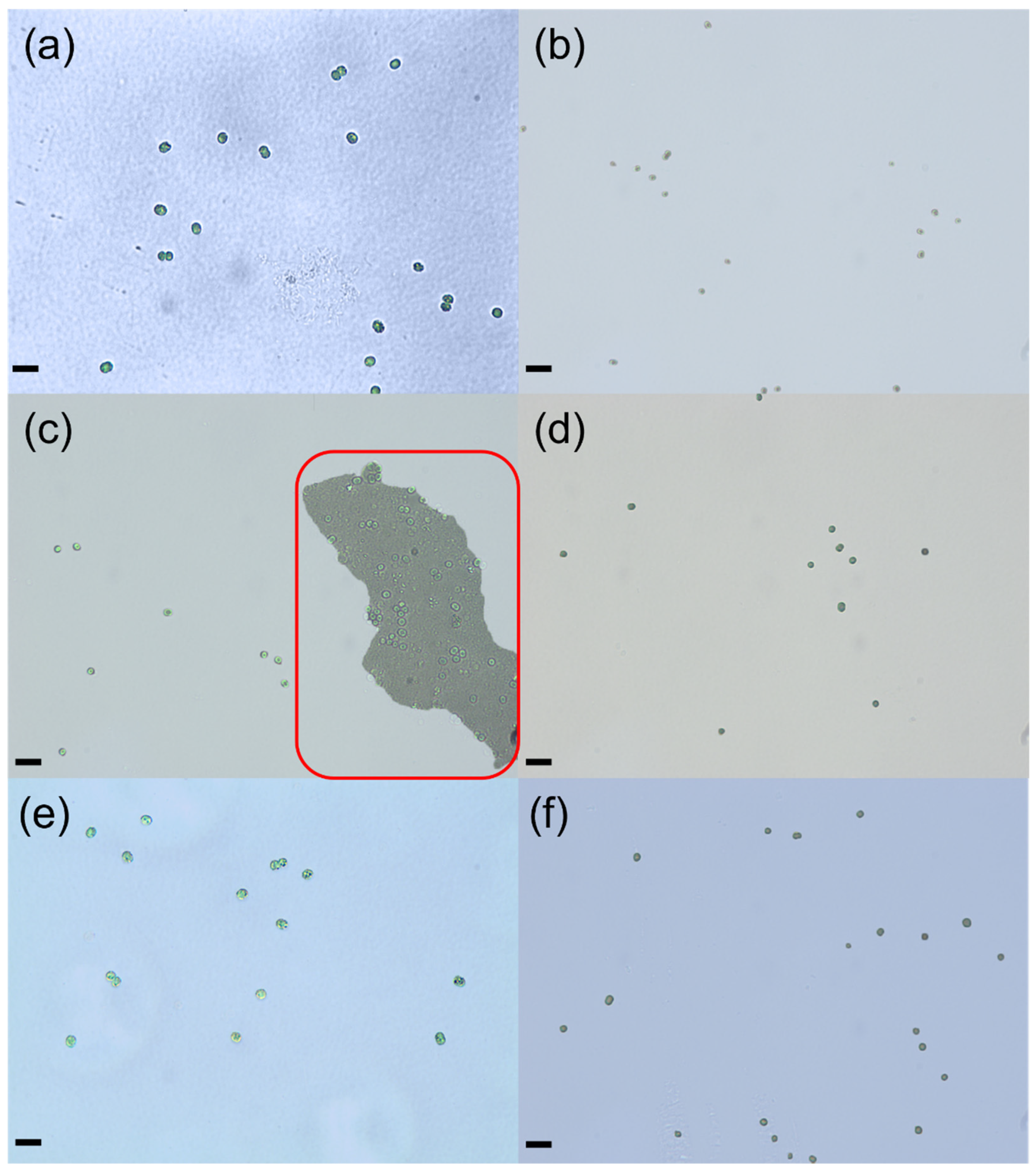 3.5. The Particle Size Distribution (PSD) and Morphology of Microcystis