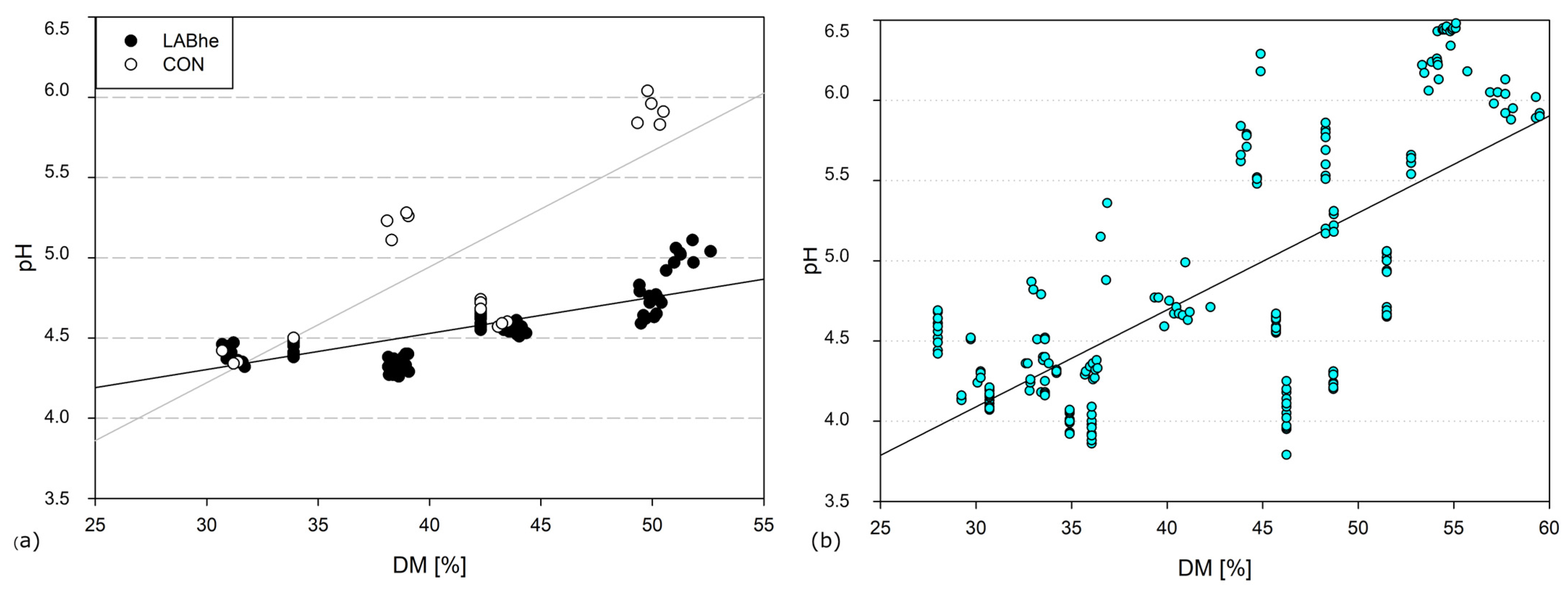 - Driehuis, F.; Oude Elferink, S.J.W.H.; Van Wikselaar, P.G. Fermentation Characteristics and Aerobic Stablility of Grass Silage Inoculated With Lactobacillus buchneri, with or without homofermentative lactic acid bacteria. Grass Forage Sci. 2001, 56, 330–343. [Google Scholar] [CrossRef]