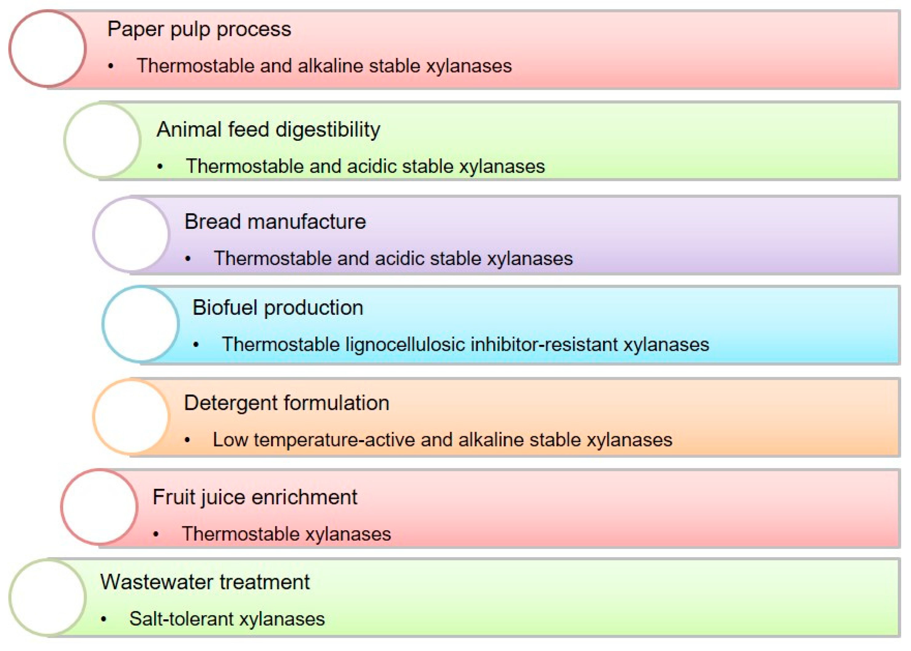 - Bhardwaj, N.; Kumar, B.; Verma, P. A Detailed Overview of Xylanases: An Emerging Biomolecule for Current and Future Prospective. Bioresour. Bioprocess. 2019, 6, 40. [Google Scholar] [CrossRef]