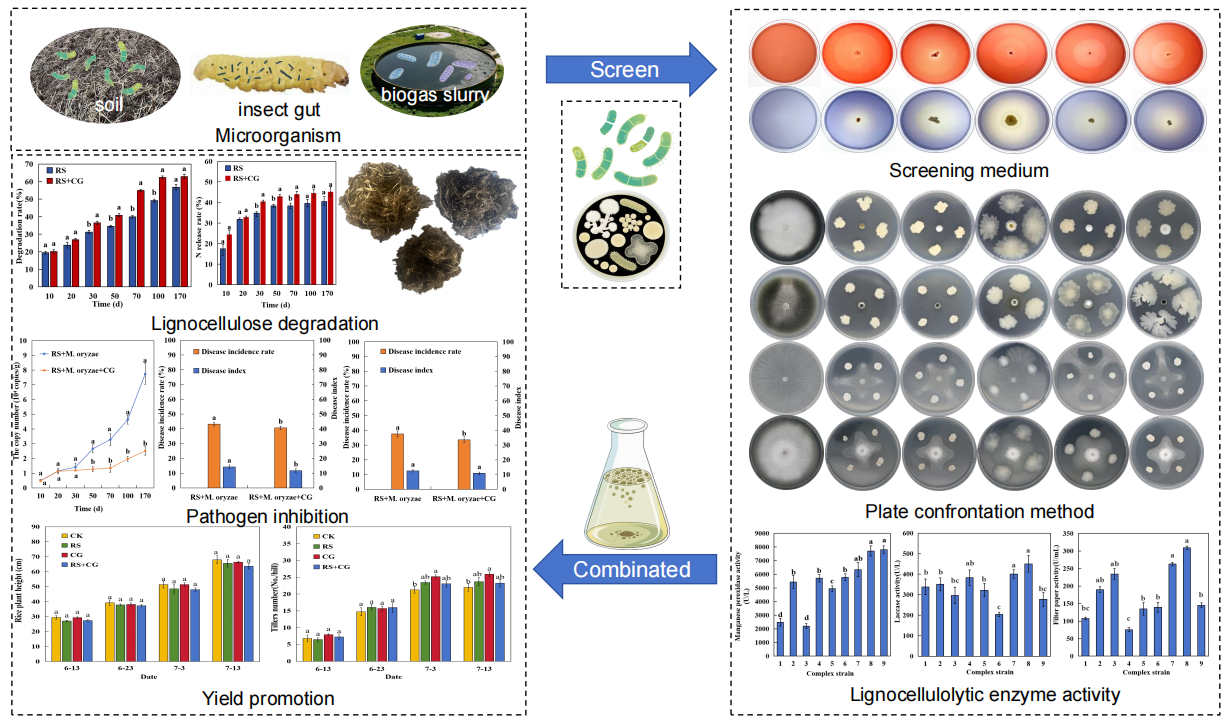 - Che, S.H.; Xu, Y.F.; Qin, X.T.; Tian, S.Q.; Wang, J.N.; Zhou, X.Y.; Cao, Z.N.; Wang, D.C.; Wu, M.K.; Wu, Z.H.; et al. Building microbial consortia to enhance straw degradation, phosphorus solubilization, and soil fertility for rice growth. Microb. Cell Fact. 2024, 23, 232. [Google Scholar] [CrossRef]