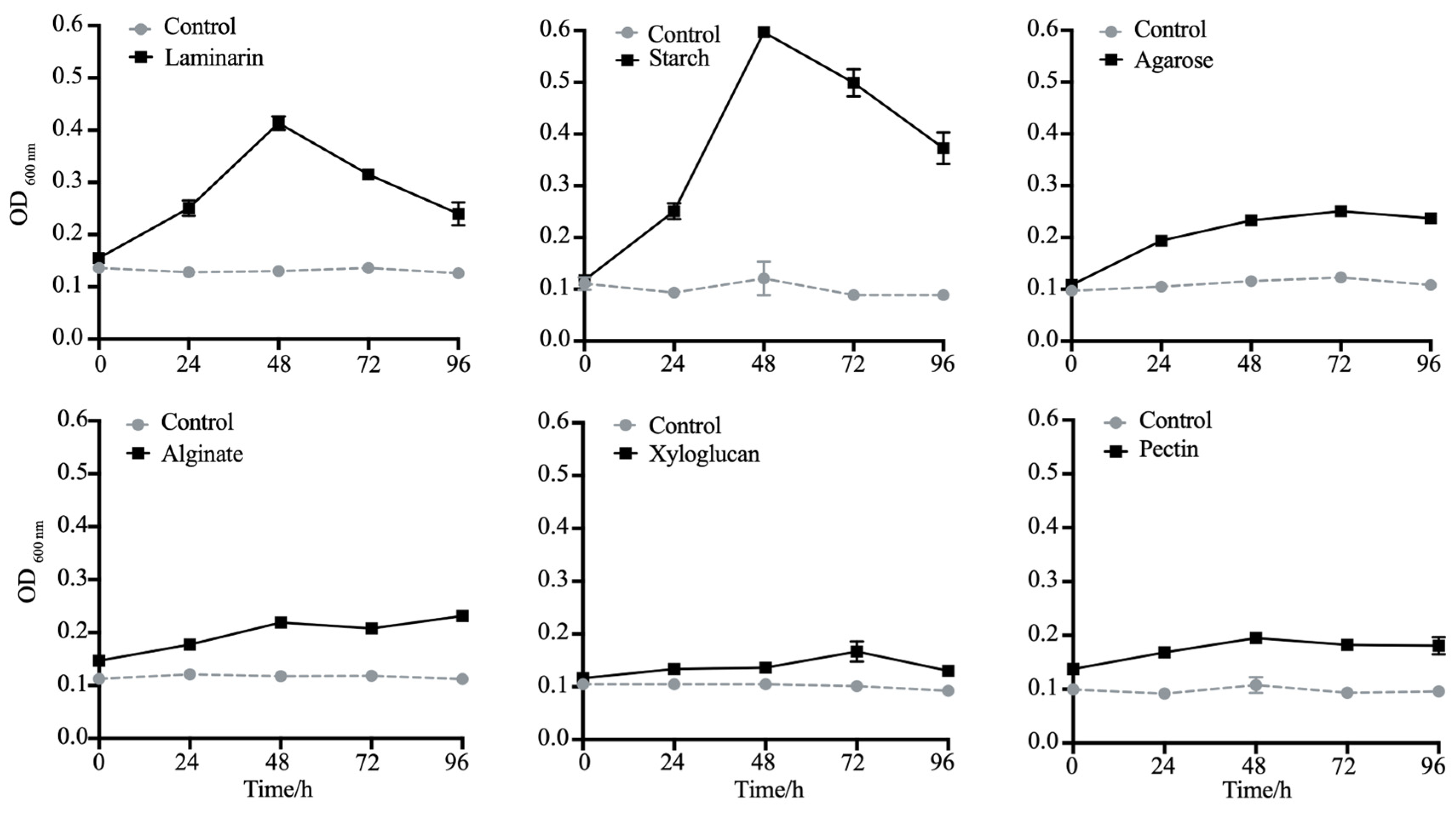 2.4. Detection of Polysaccharides Utilizing Activity