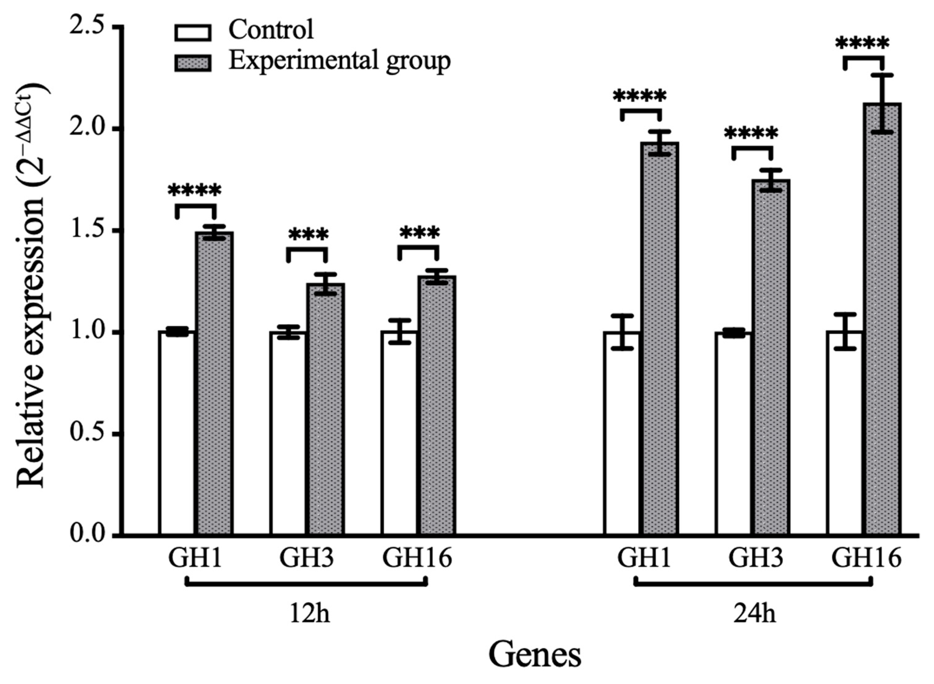 2.5. qRT-PCR Detection of Glycoside Hydrolase-Encoding Genes