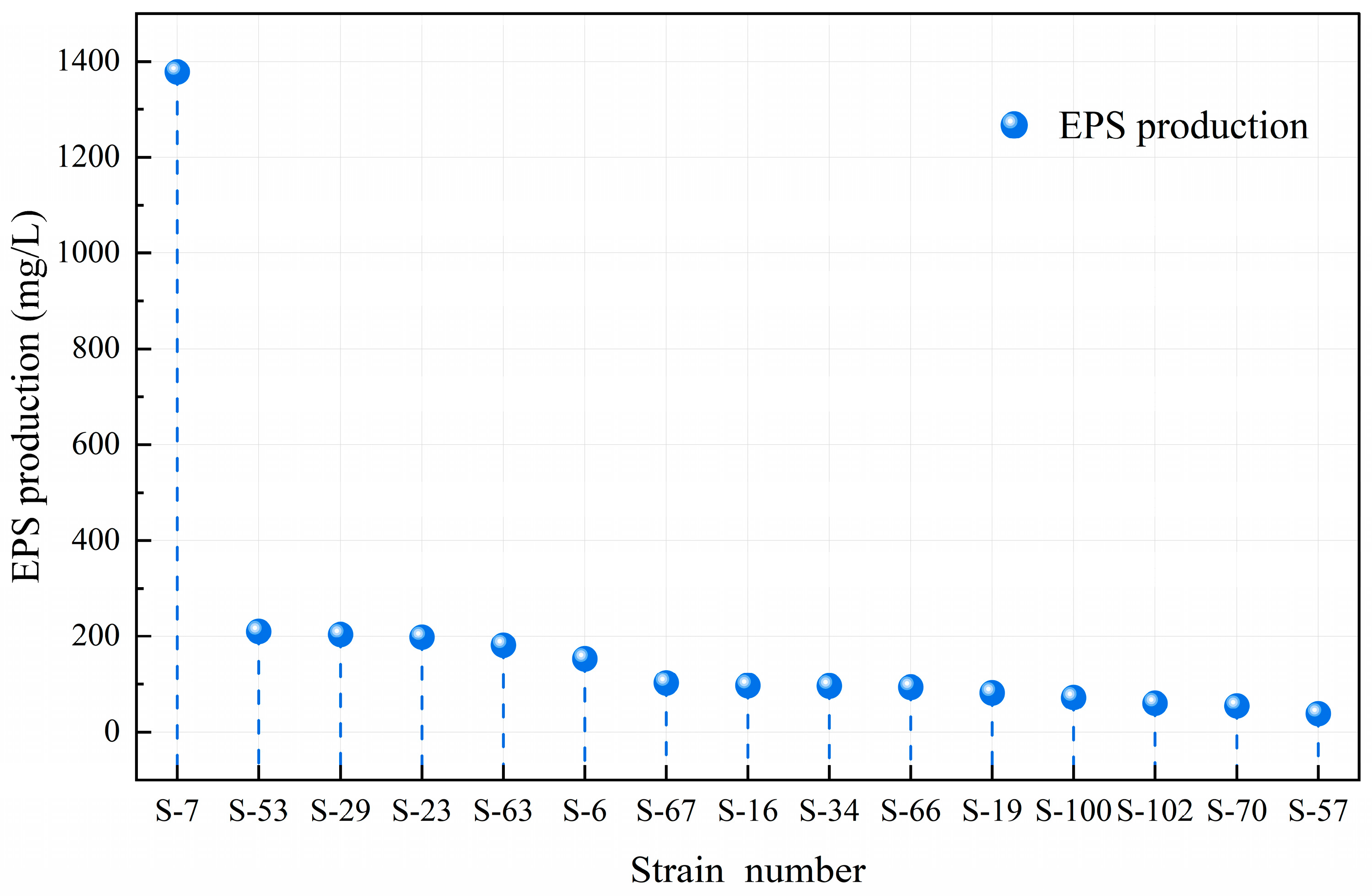 3.2. Screening of High EPS-Producing Strains