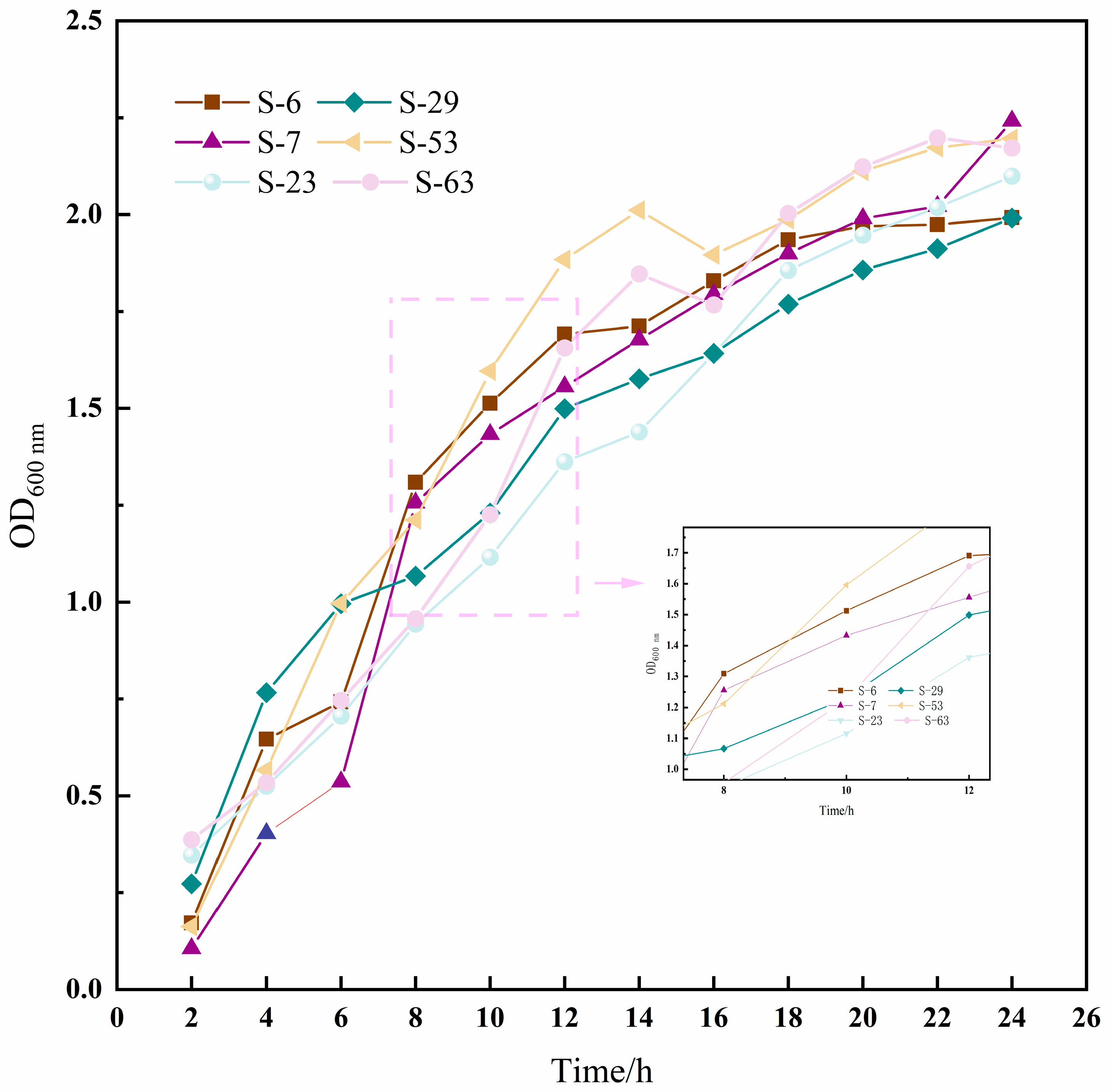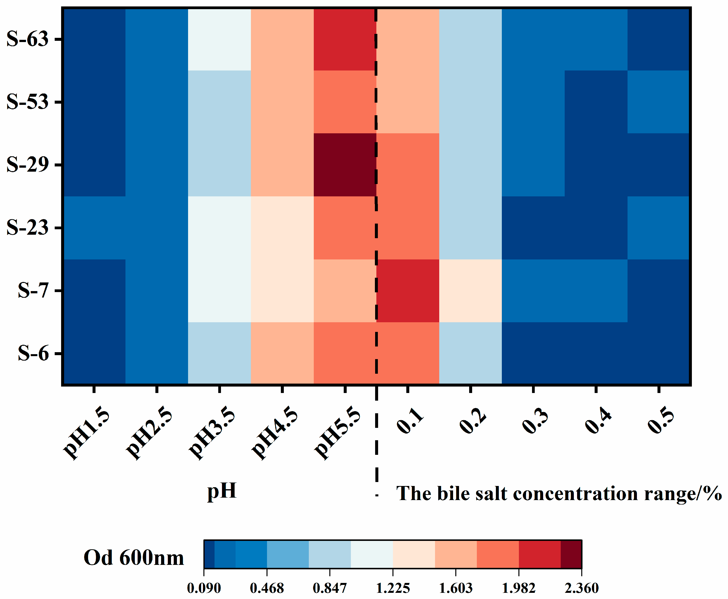 2.5. Growth Characteristics of Strains Under Acidic Stress
