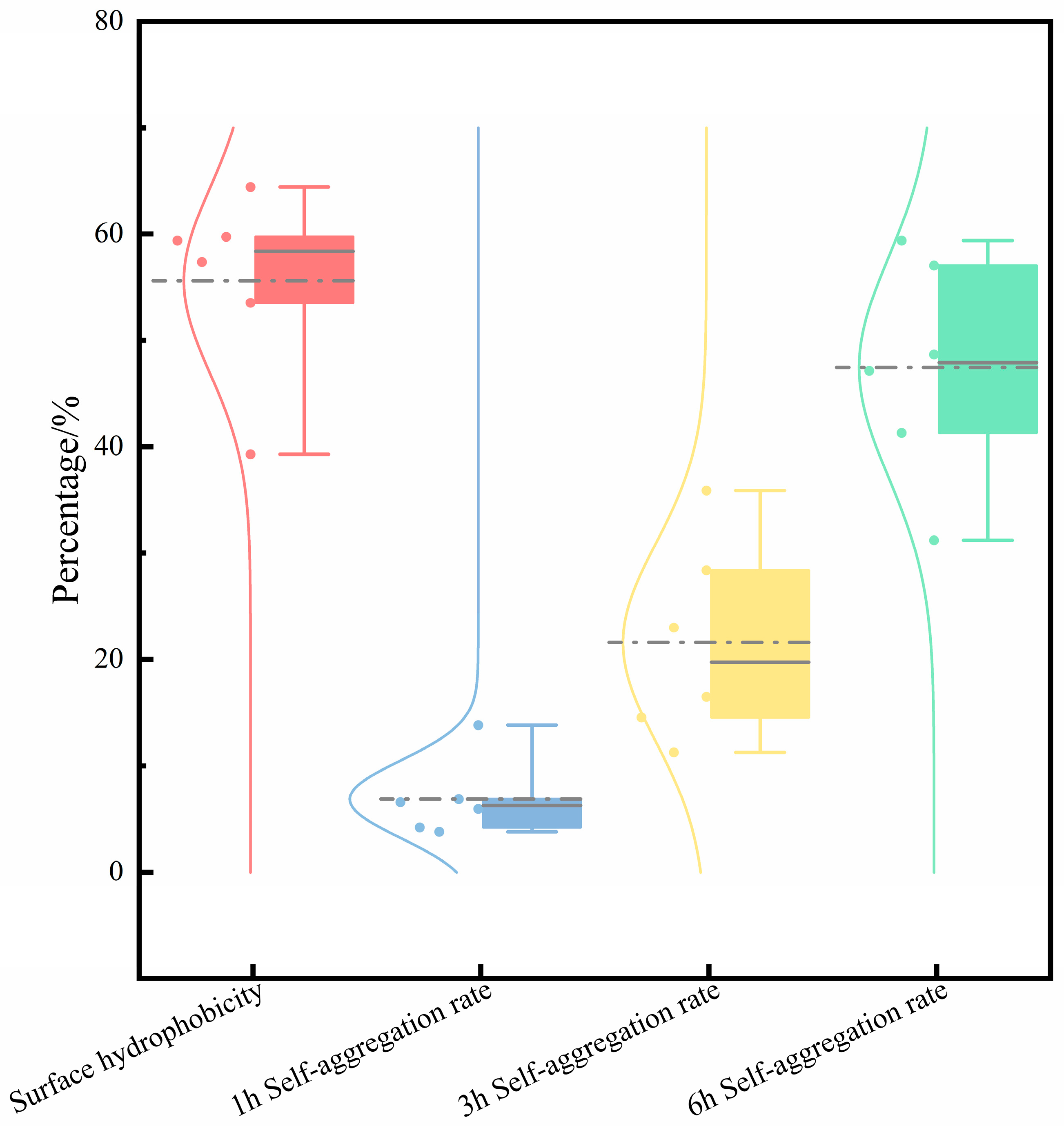 3.5. Determination of Self-Aggregation Ability and Surface Hydrophobicity