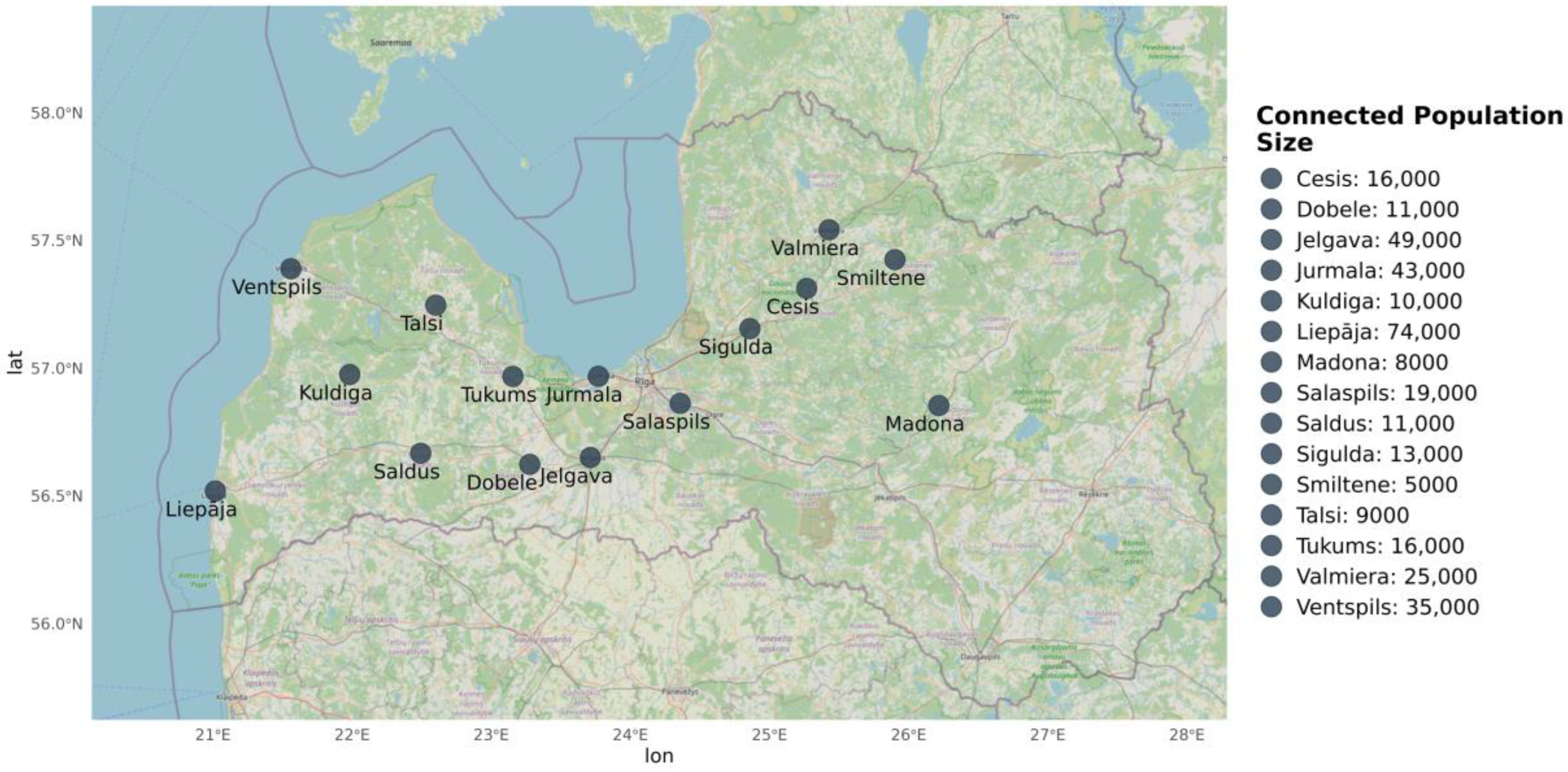 | Ventspils | Large | 16,001–35,000 |