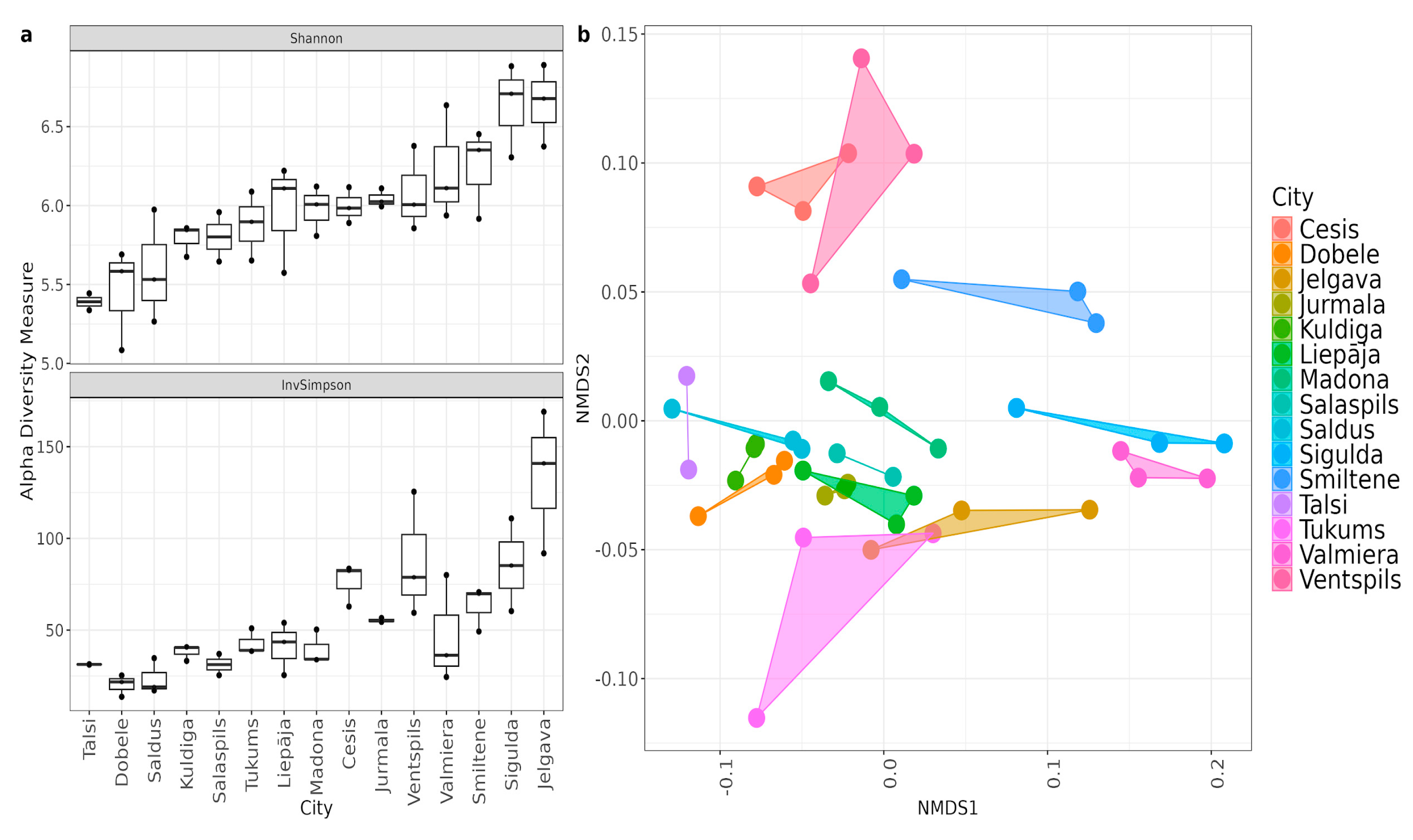 - Oksanen, J.; Simpson, G.L.; Blanchet, F.G.; Kindt, R.; Legendre, P.; Minchin, P.R.; O’Hara, R.B.; Solymos, P.; Stevens, M.H.H.; Szoecs, E.; et al. vegan: Community Ecology Package, R package version 2.8-0. 2025. Available online: https://vegandevs.github.io/vegan/ (accessed on 5 January 2026).