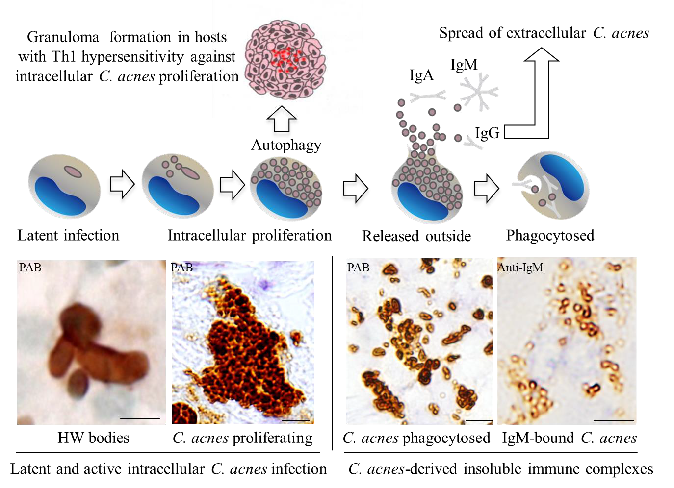 | Latent reservoirs | Intracellular persistence of C. acnes within macrophages | Subclinical latency |