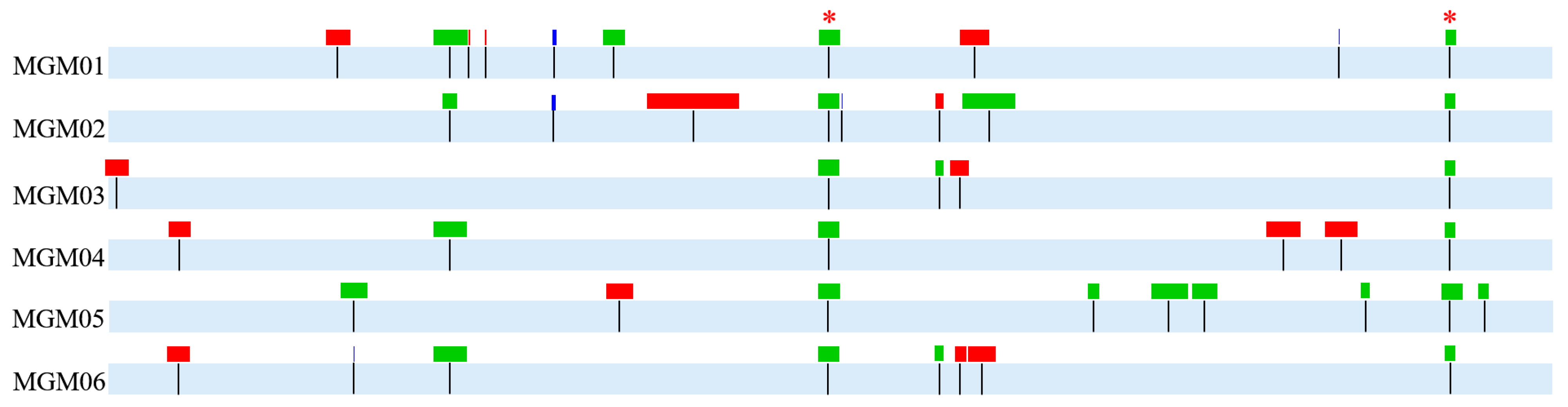 2.5. PCR Detection of Genetic Changes in Gaps Between Scaffolds, Followed by Sequencing