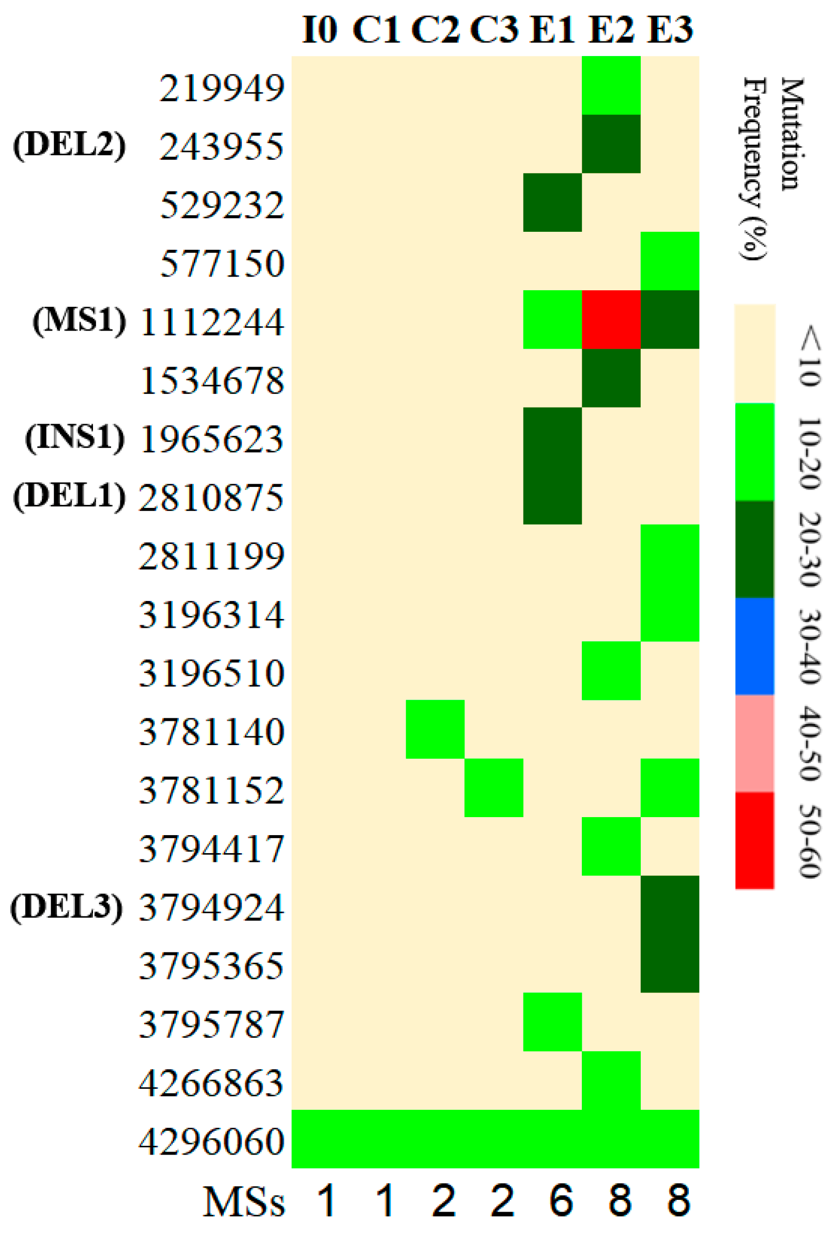 3.6. Genomic Resequencing Reveal Divergent Evolutionary of Coevolved E. coli Populations