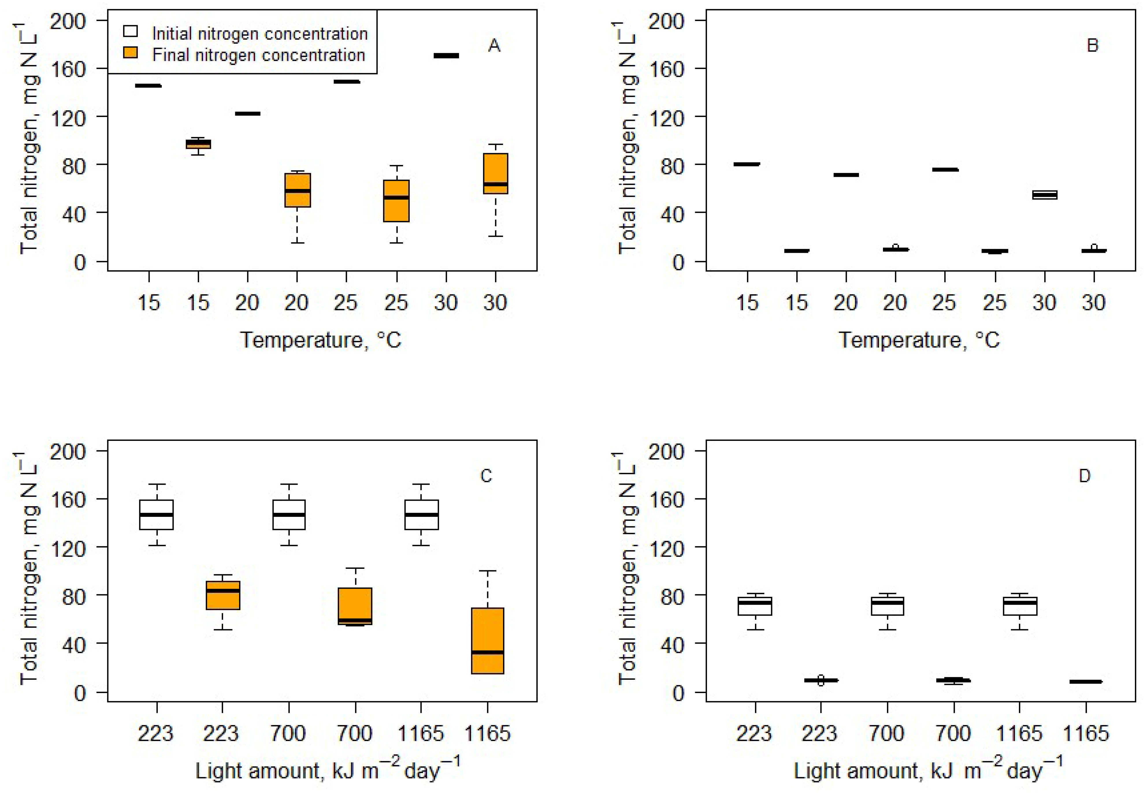 Chicago/Turabian StyleVenckus, Petras, and Eglė Lastauskienė. 2026. "Influence of Light, Temperature, and Nutrient Availability on Growth and Biochemical Composition of Scenedesmus quadricauda Cultivated in Municipal Wastewater" Microorganisms 14, no. 1: 183. https://doi.org/10.3390/microorganisms14010183