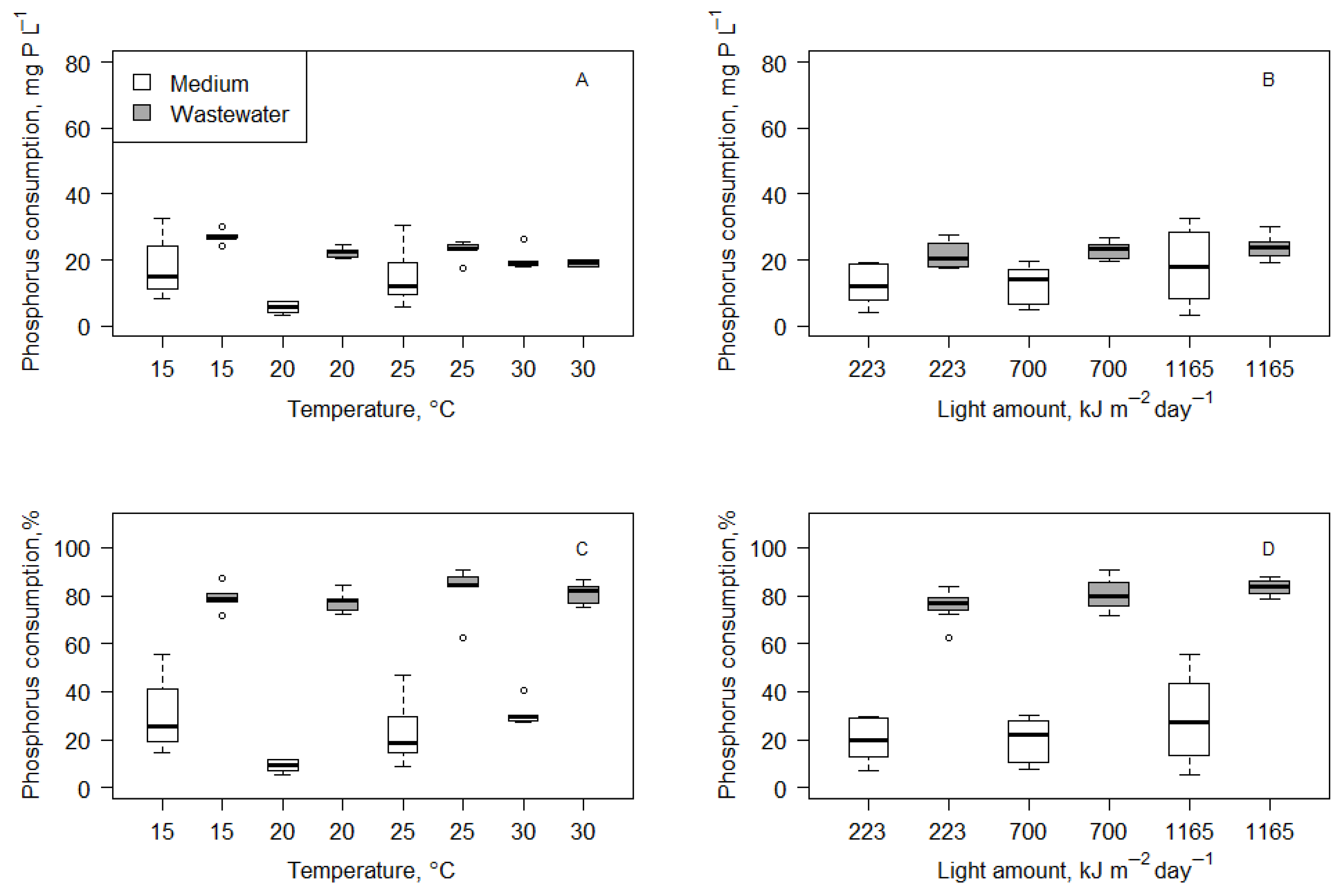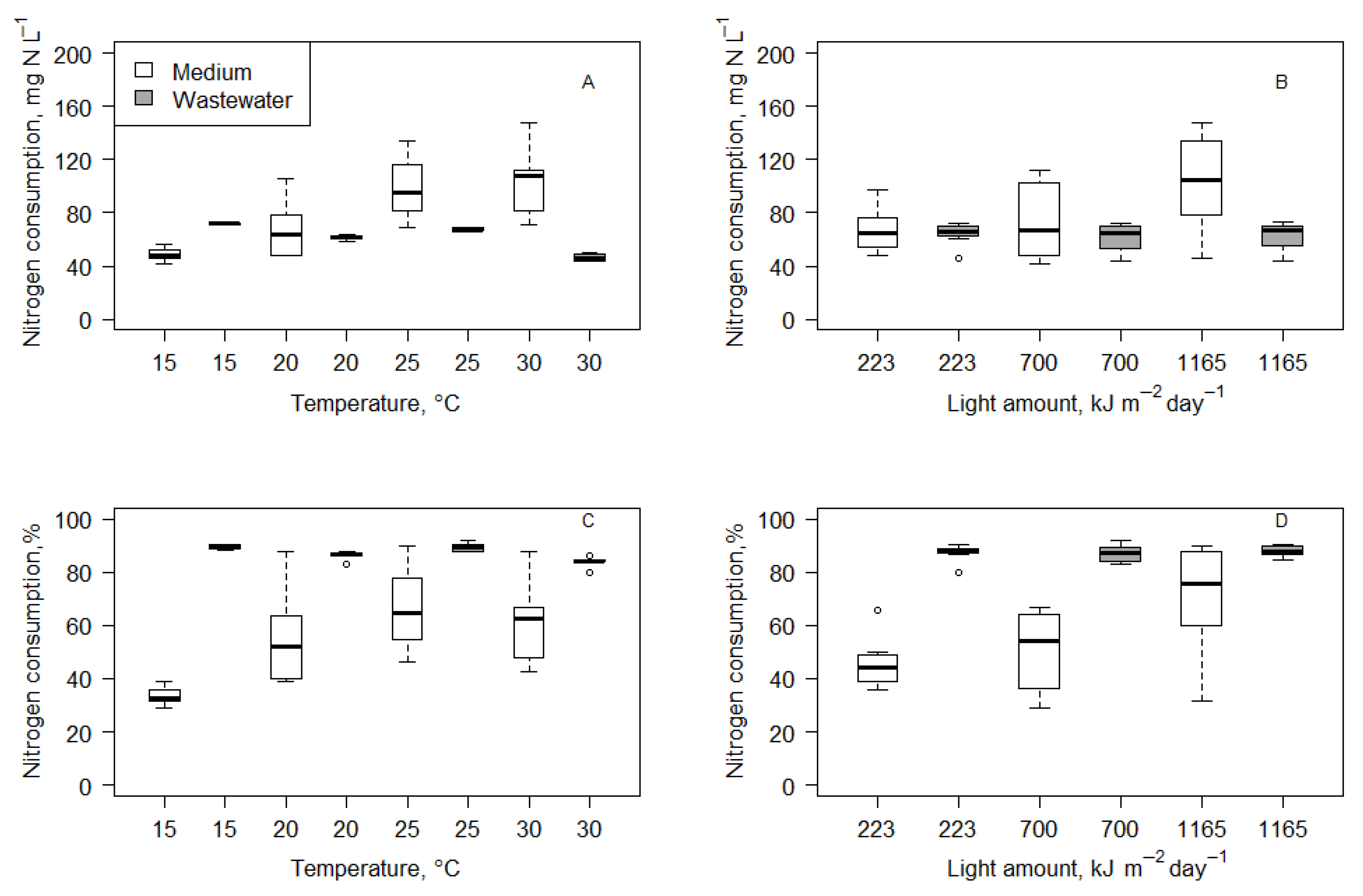 Venckus P, Lastauskienė E. Influence of Light, Temperature, and Nutrient Availability on Growth and Biochemical Composition of Scenedesmus quadricauda Cultivated in Municipal Wastewater. Microorganisms. 2026; 14(1):183. https://doi.org/10.3390/microorganisms14010183