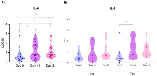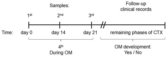 3.4. Cytokine Profile in Saliva in Patients with ALL on Days 0, 14 and 21 of CTX and in Patients Who Experienced OM During Subsequent Phases of CTX vs. Children Who Never Developed OM
