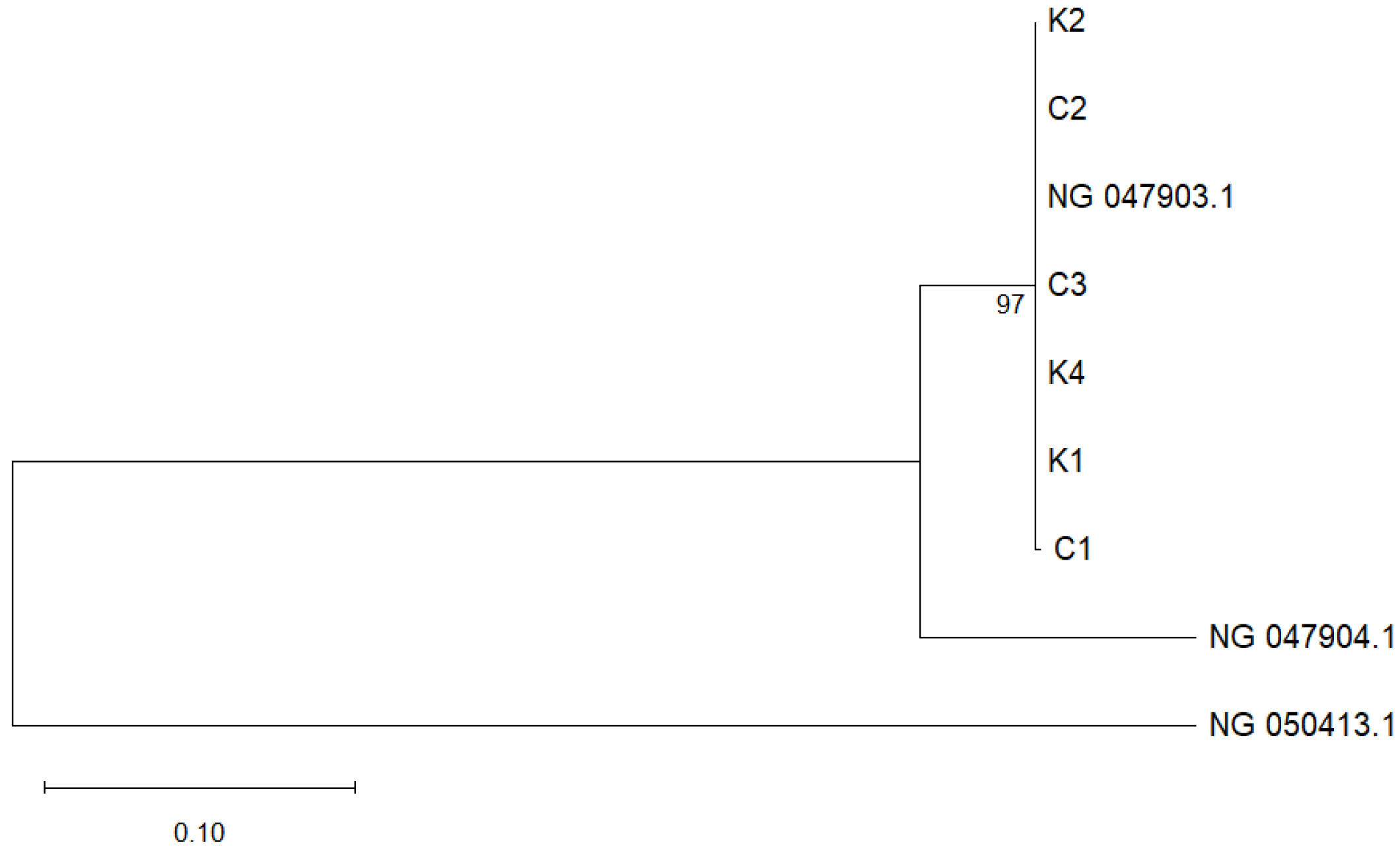 - Tamura, K.; Stecher, G.; Kumar, S. MEGA11: Molecular Evolutionary Genetics Analysis Version 11. Mol. Biol. Evol. 2021, 38, 3022–3027. [Google Scholar] [CrossRef] [PubMed]
