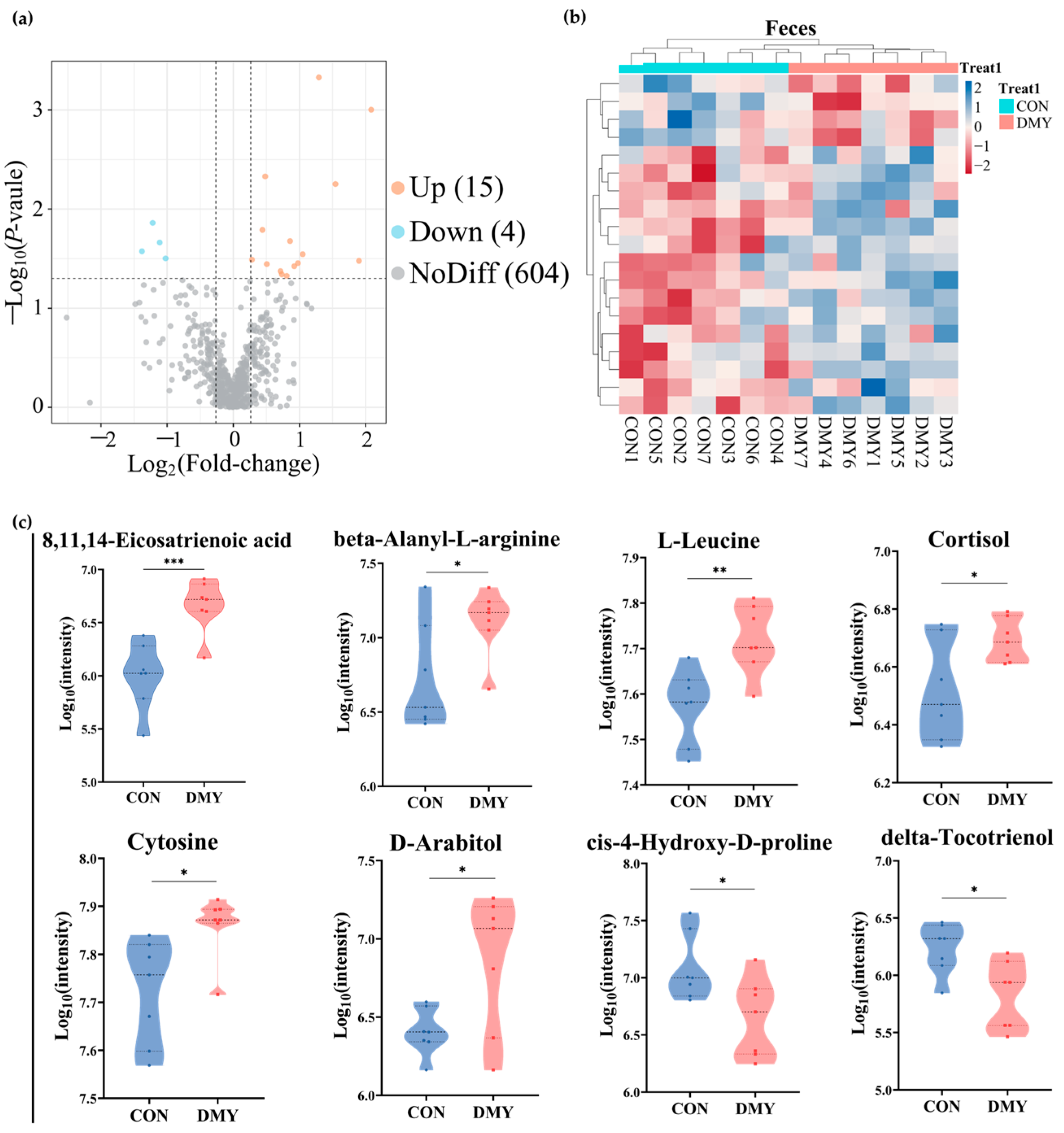 3.5. Fecal Metabolomic Profiling of Dairy Cows in Different Groups