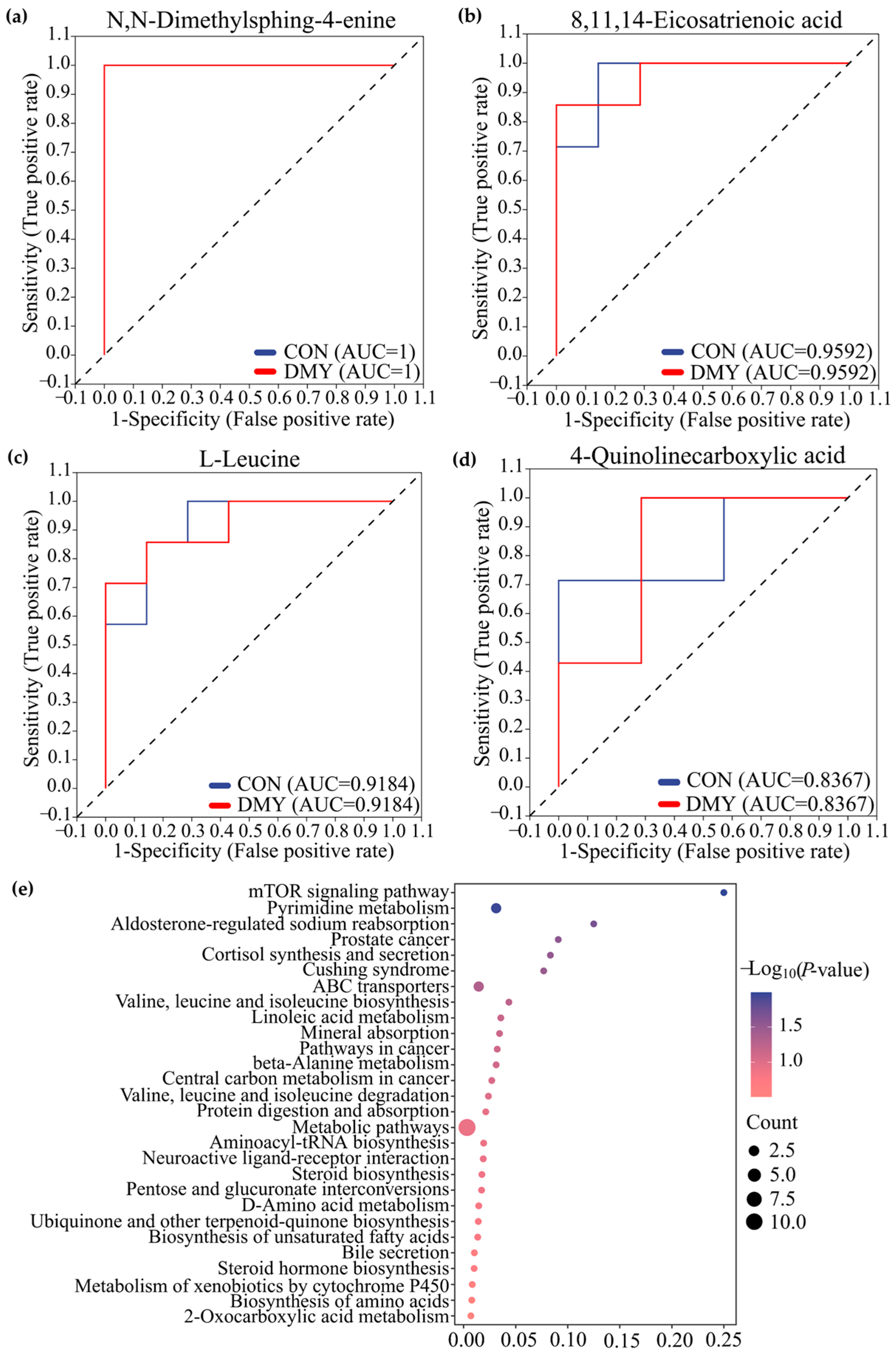| 12,13-DHOME | 0.8086 | −0.3064 | 1.9709 | 0.0227 | 295.2284 | 11.8467 | Fatty Acyls | Fatty acids and conjugates | Down |