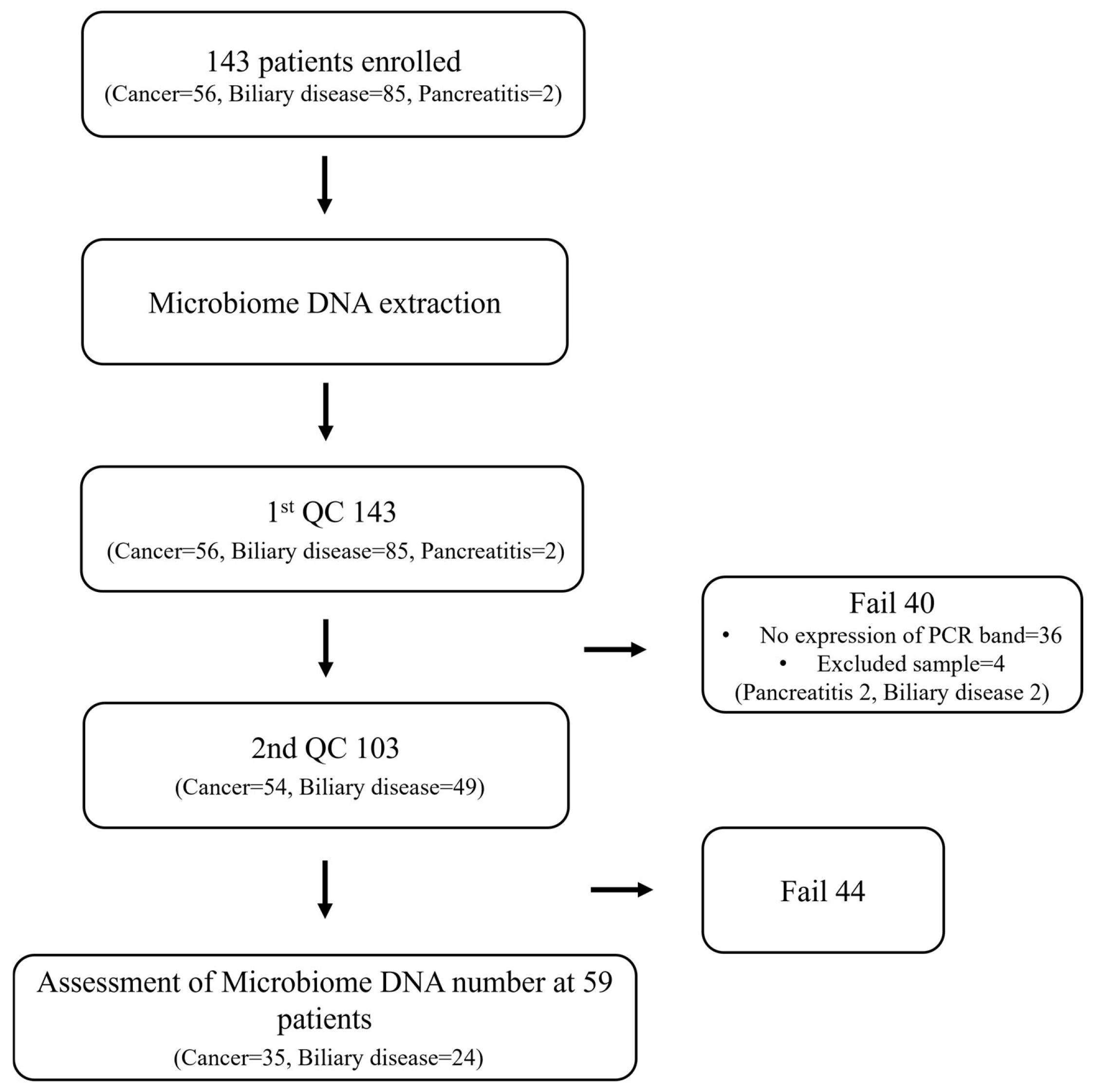 APA StyleLee, H. J., Park, S. H., Han, S. Y., Lee, J. H., Kim, D. U., & Seo, H. I. (2026). Differences in the Biliary Microbiome Between Biliary Tract Cancer and Benign Biliary Disease. Microorganisms, 14(1), 208. https://doi.org/10.3390/microorganisms14010208