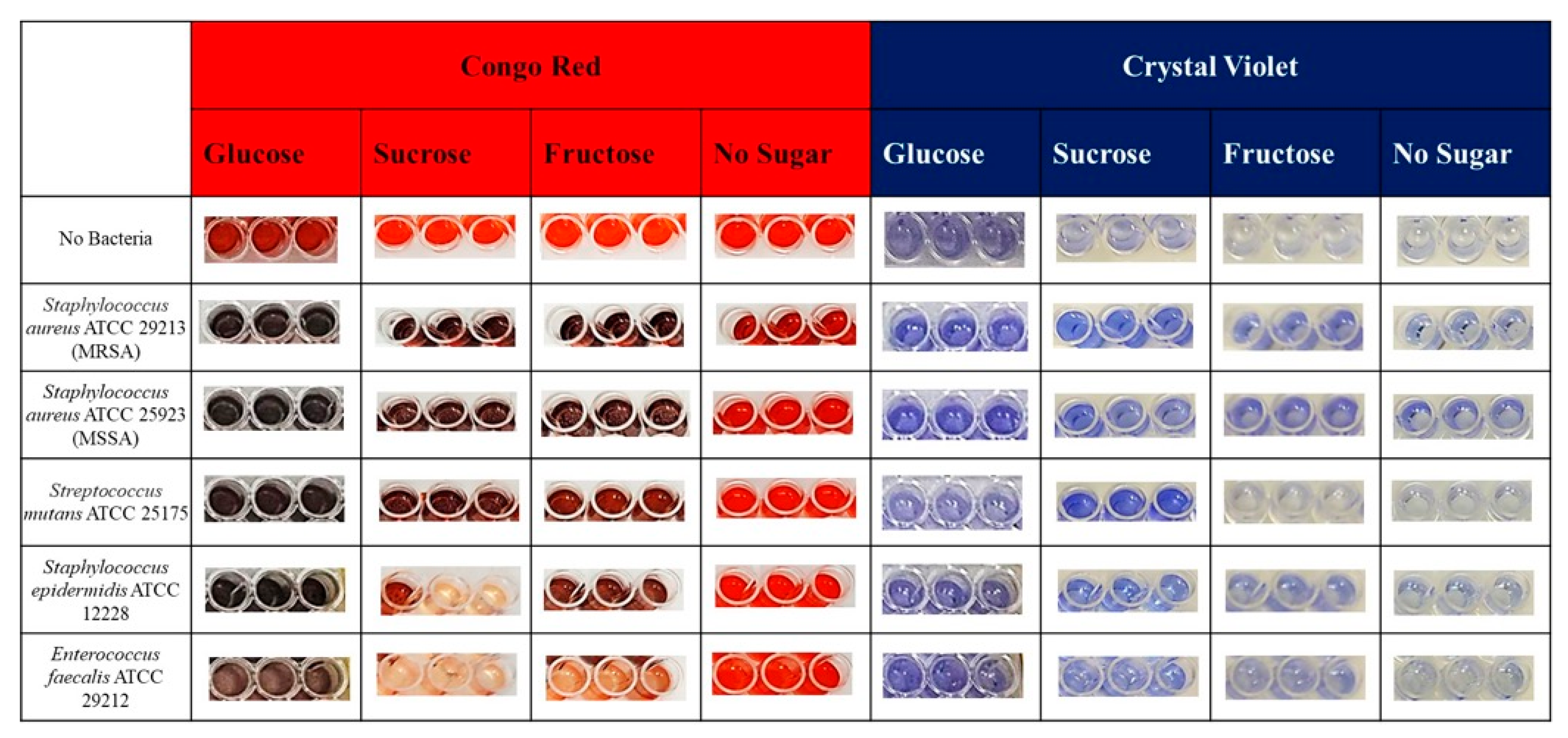 Inconsistent Findings Between Crystal Violet and Congo Red Methods on Biofilms with Comparative Sugar Supplementation