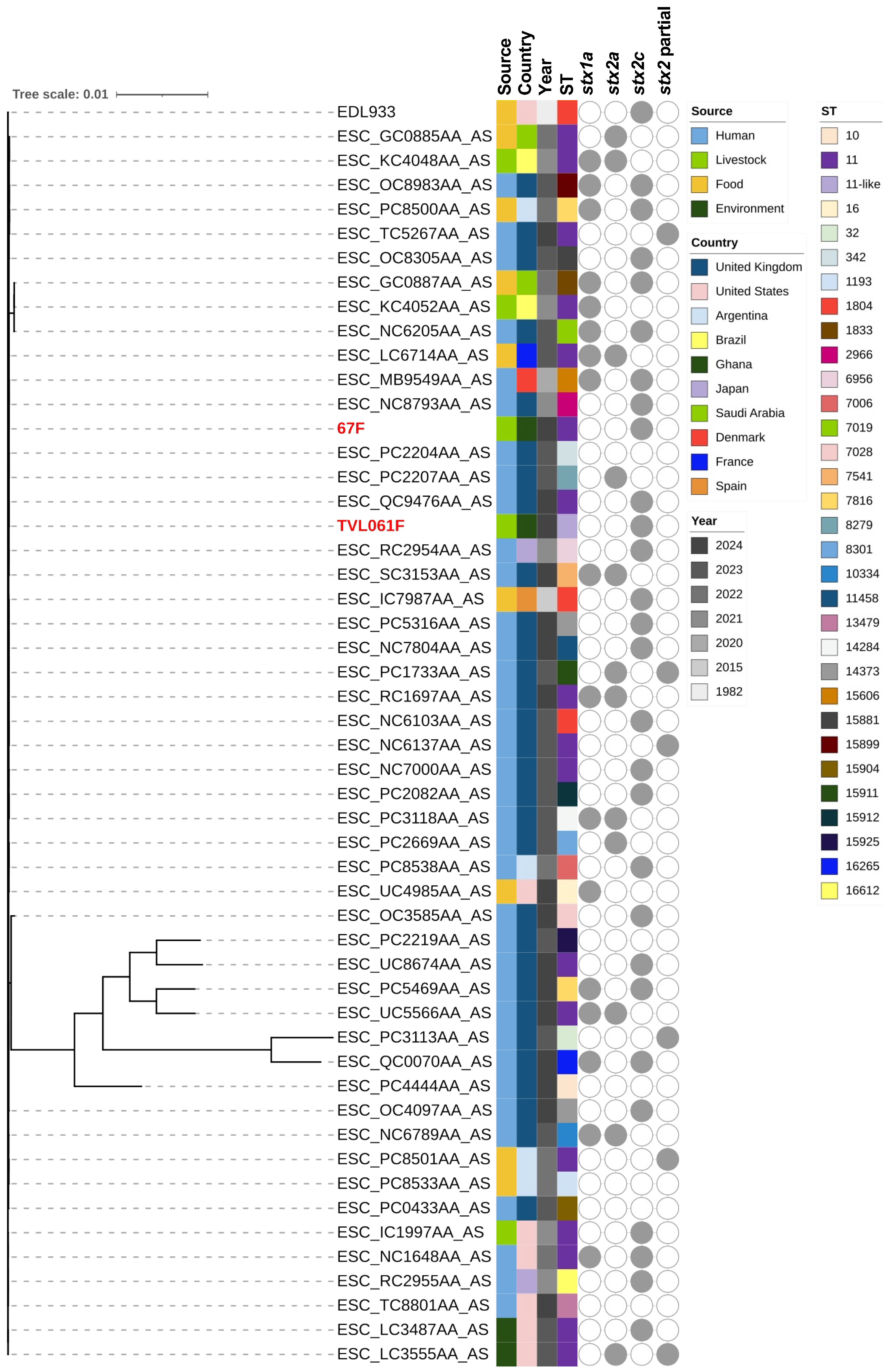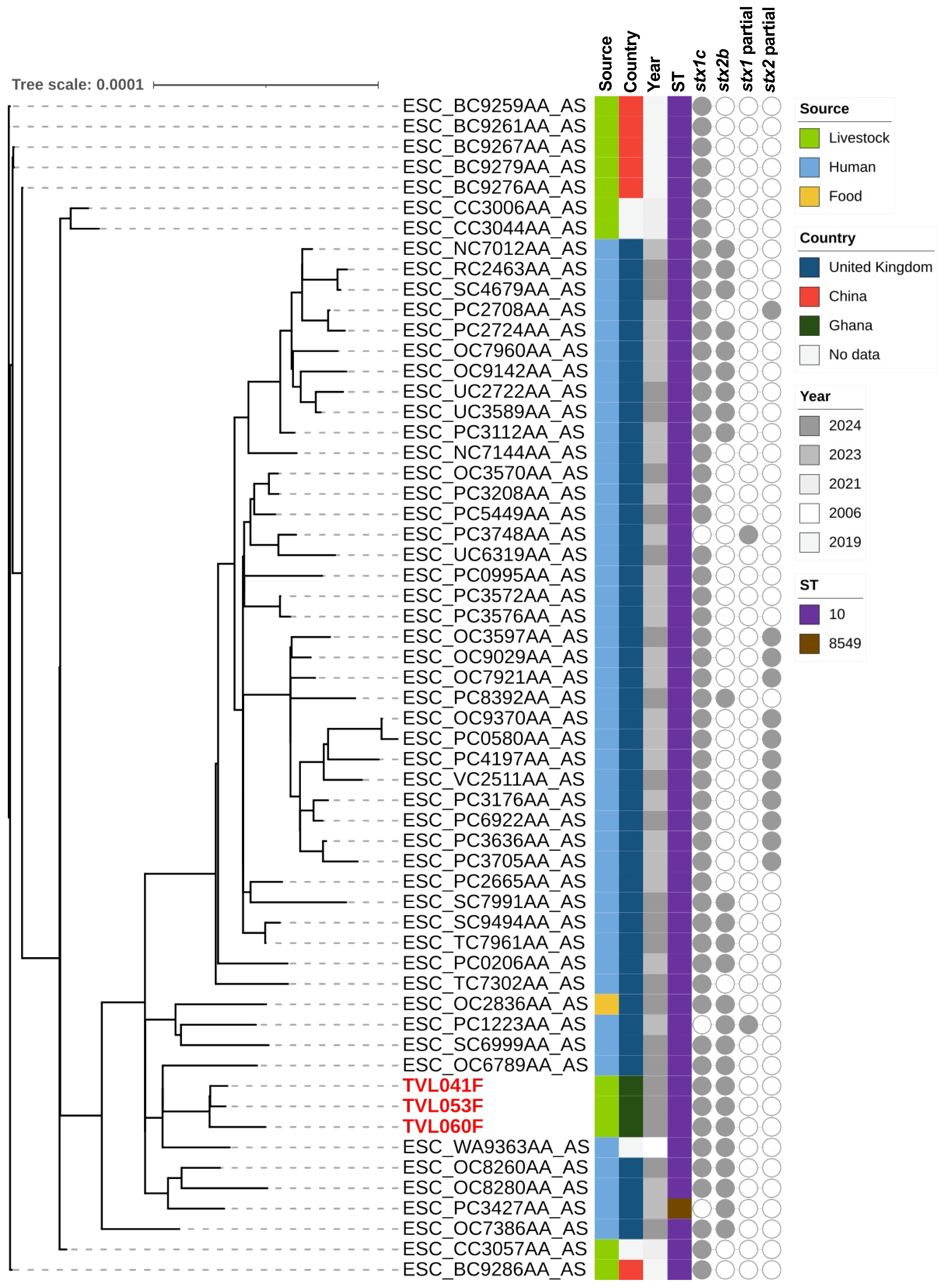 - Tarr, G.A.M.; Chui, L.; Stanford, K.; Bumunang, E.W.; Zaheer, R.; Li, V.; Freedman, S.B.; Laing, C.R.; McAllister, T.A. Persistent cross-species transmission systems dominate Shiga toxin-producing Escherichia coli O157:H7 epidemiology in a high incidence region: A genomic epidemiology study. eLife 2025, 13, RP97643. [Google Scholar] [CrossRef] [PubMed]