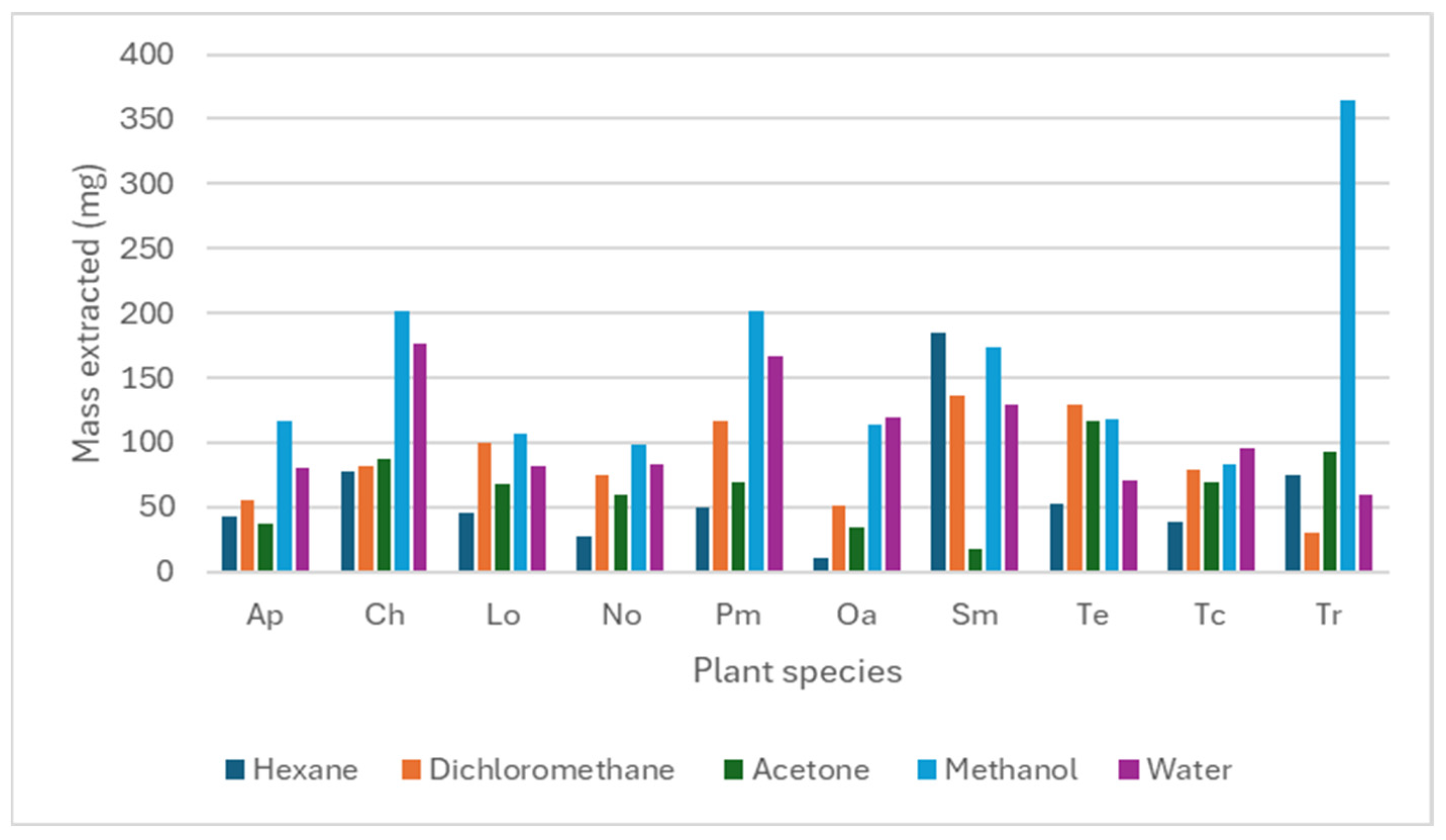 3.1. Extract Mass Obtained from Plant Material