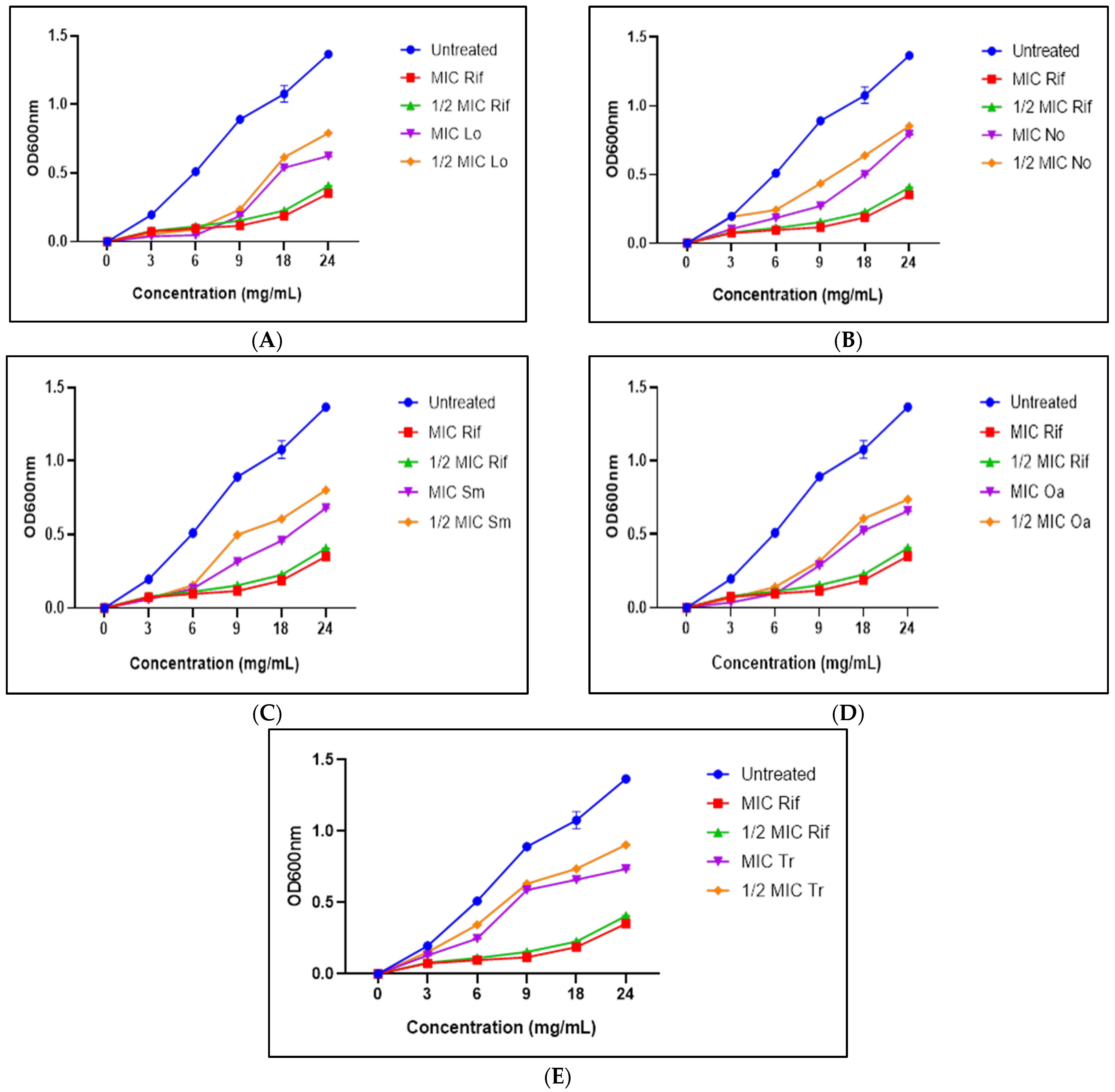 2.7. Antimycobacterial Mechanism of the Plant Extracts