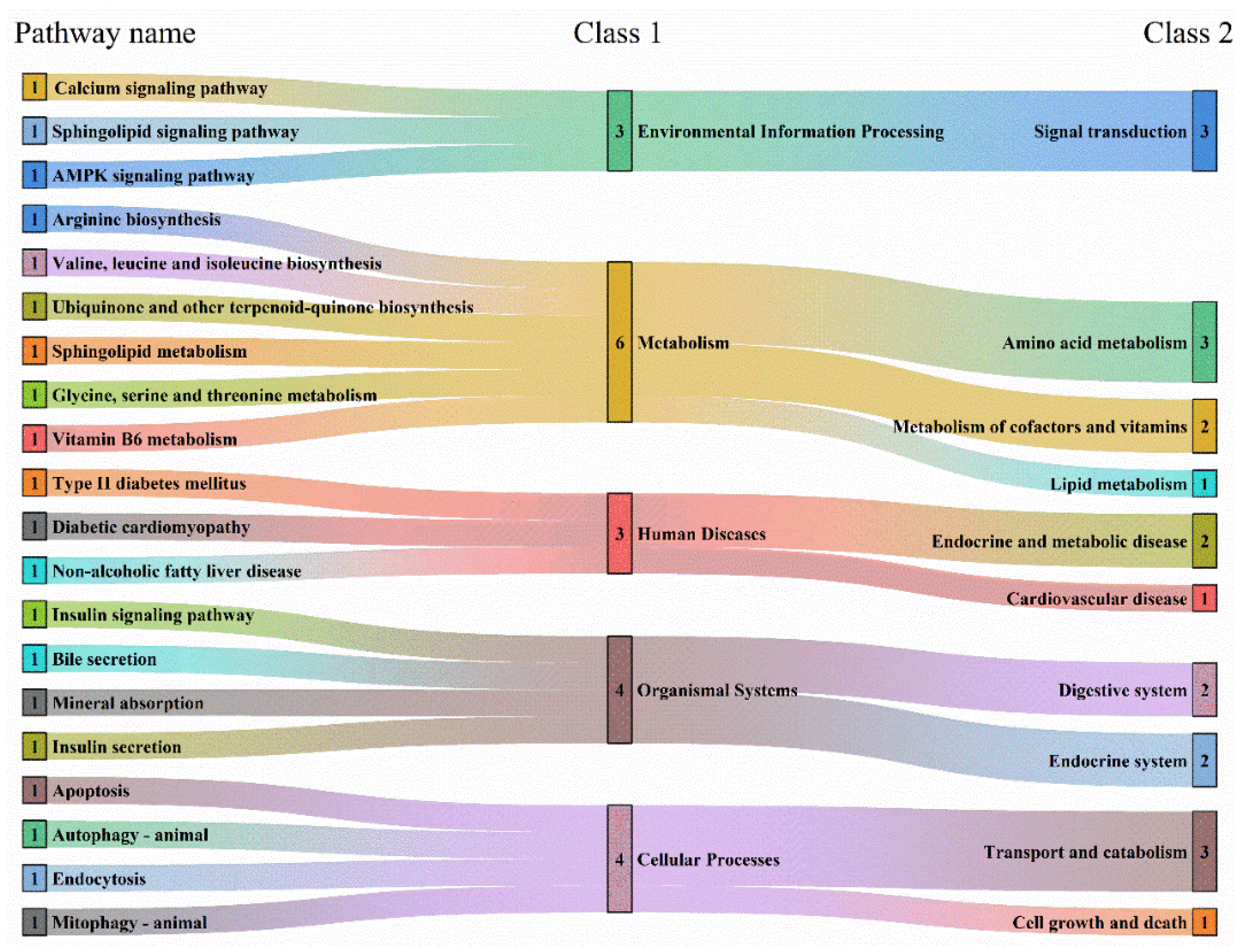 | Pathway Name | KEGG ID | Class 1 | Class 2 |