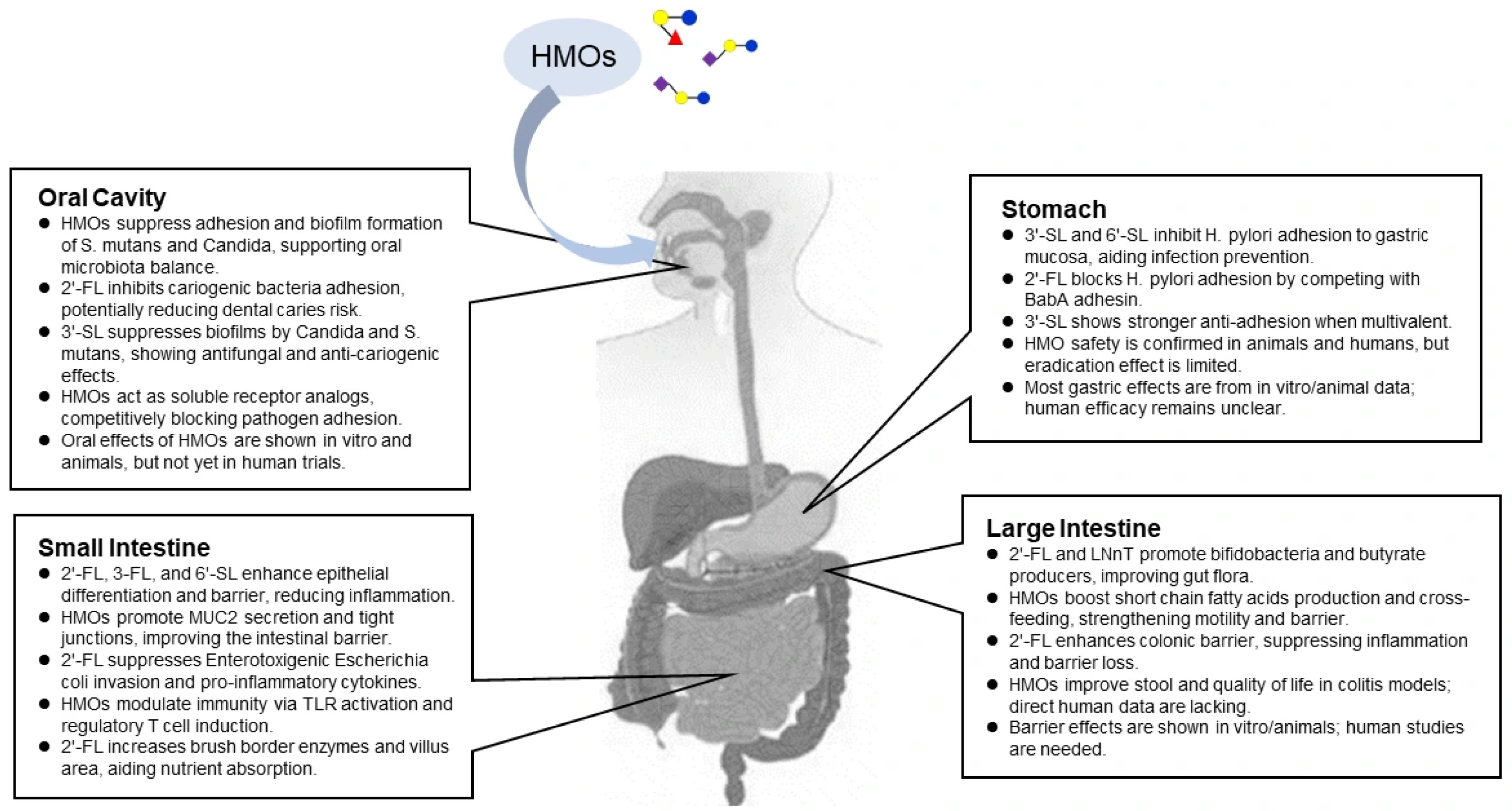 Gastrointestinal Journey of Human Milk Oligosaccharides: From Breastfeeding Origins to Functional Roles in Adults