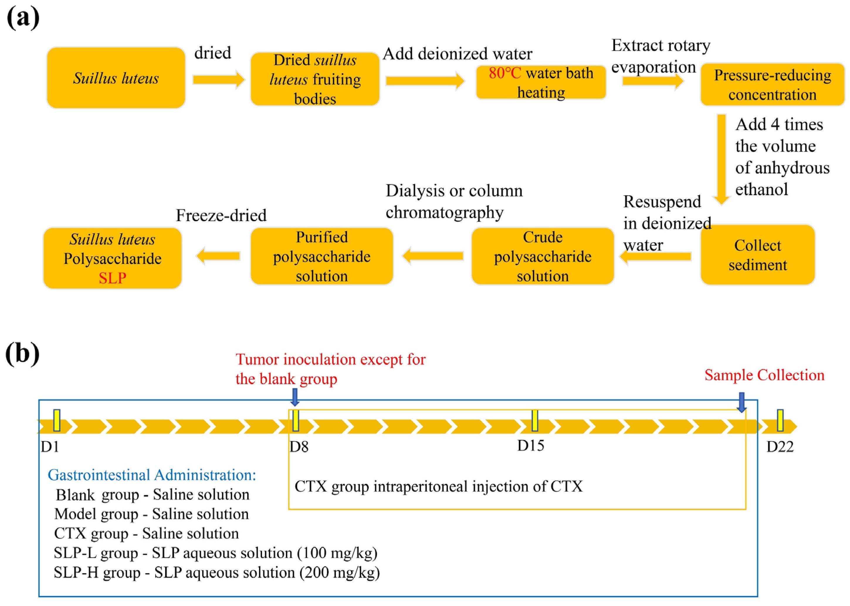 - Gao, X.; Fan, Y.; Dai, K.; Zheng, G.; Jia, X.; Han, B.; Xu, B.; Ji, H. Structural characterization of an acid-extracted polysaccharide from Suillus luteus and the regulatory effects on intestinal flora metabolism in tumor-bearing mice. Int. J. Biol. Macromol. 2024, 280, 136137. [Google Scholar] [CrossRef]